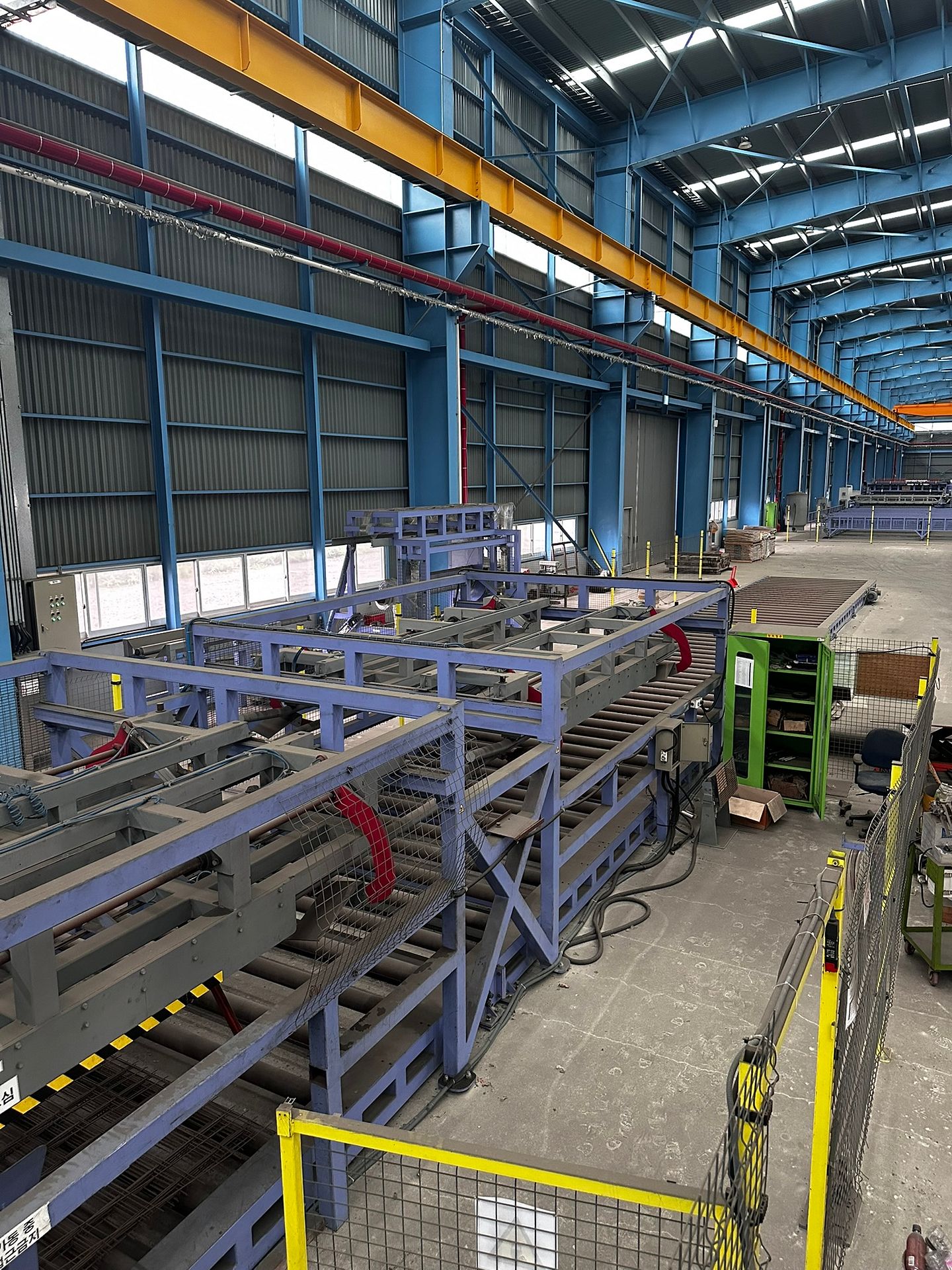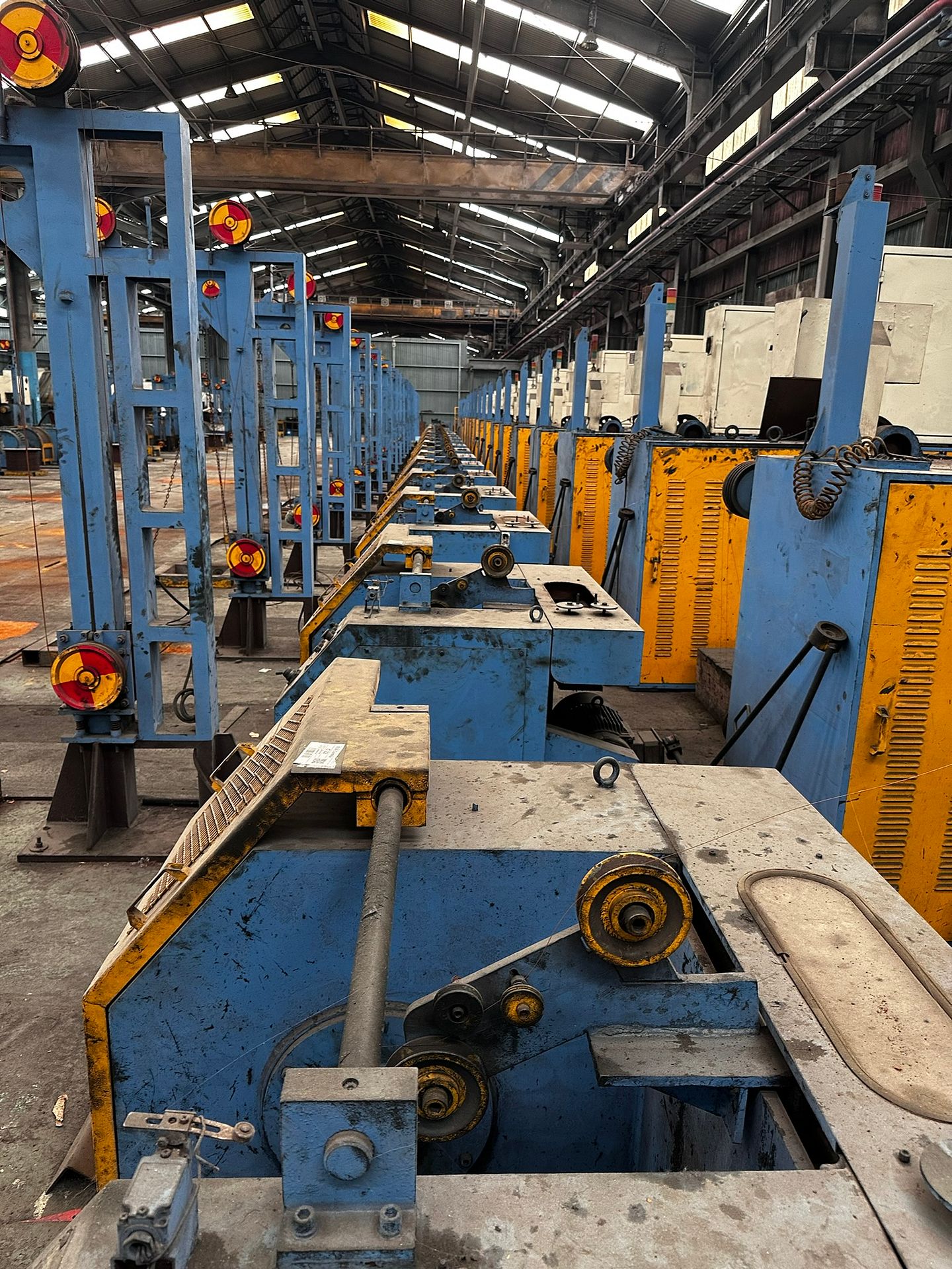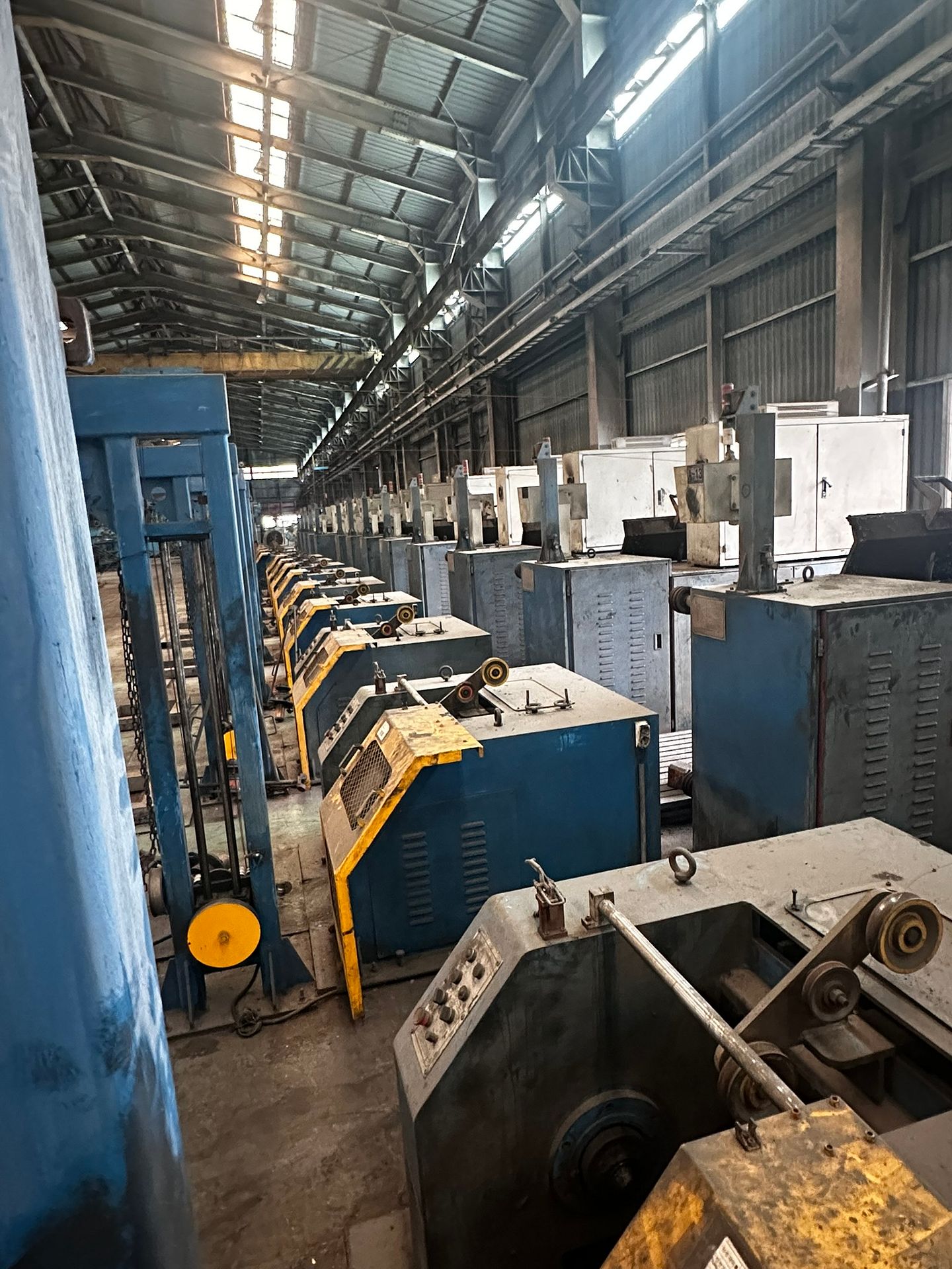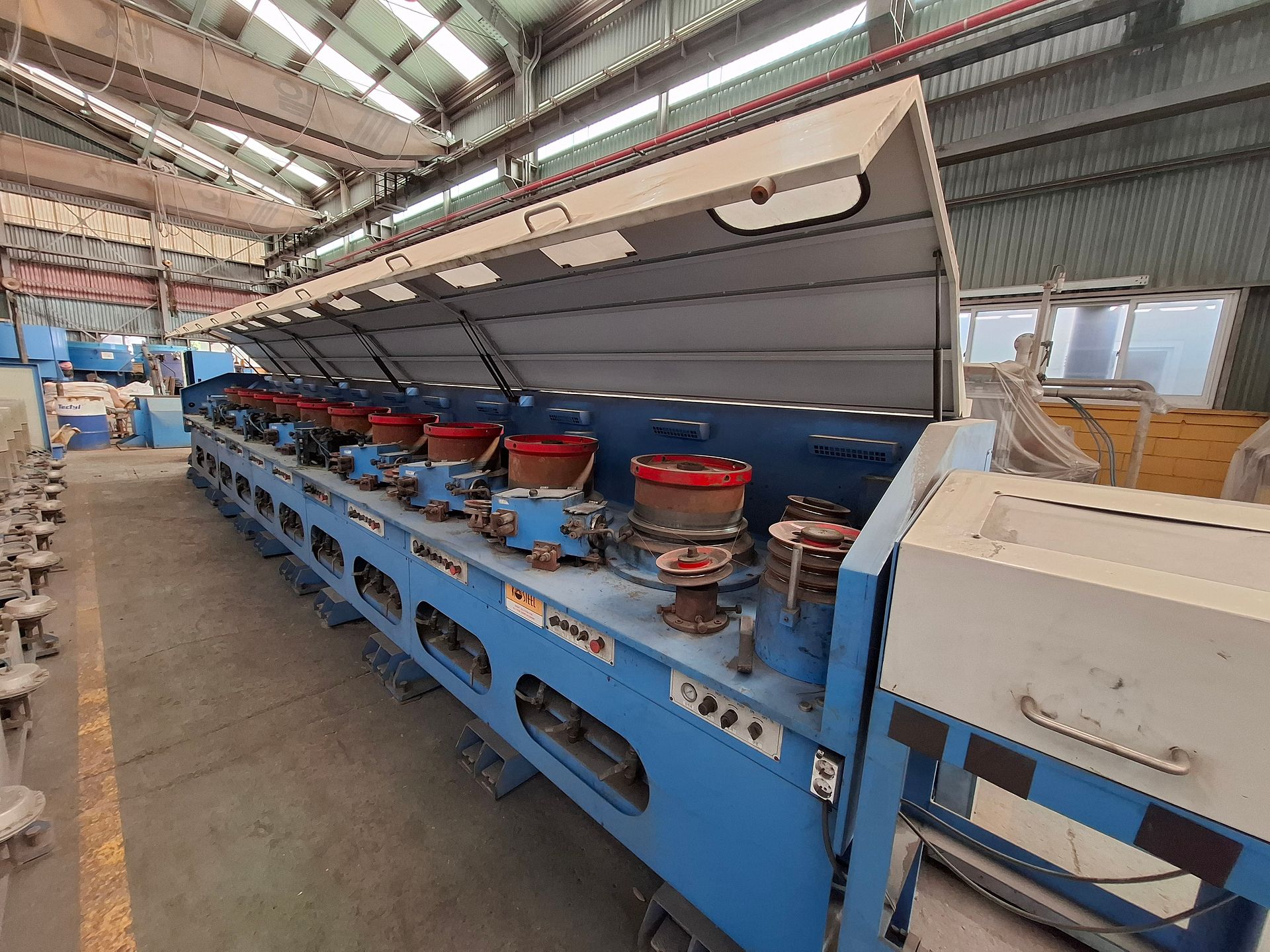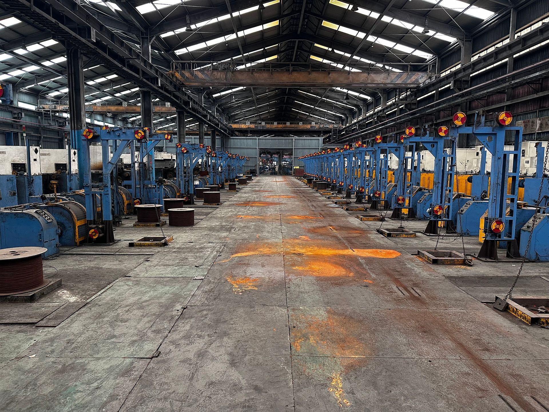 KOSteel production line for the manufacturing of its globally recognized BUNDREX® steel fiber, this facility integrates high-speed wire transformation systems with shaping and packaging. It includes dry and wet drawing machines capable of reducing carbon steel wire from 6.5 mm to 0.5 mm at speeds exceeding 1,000 m/min, followed by pointing, welding, rewinding, and modular fiber shaping units. Bundling and packaging systems complete the process, enabling industrial-scale output of reinforcement-grade steel fibers. Support equipment such as descalers, heat treatment units, tensile testers, and forklifts ensure full-cycle processing and operational autonomy.