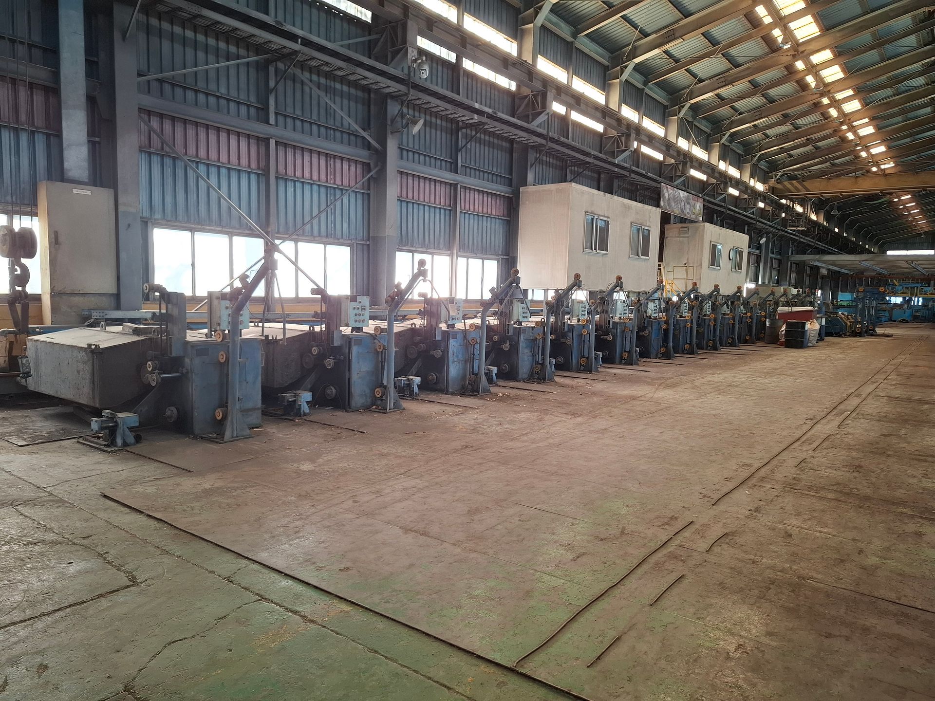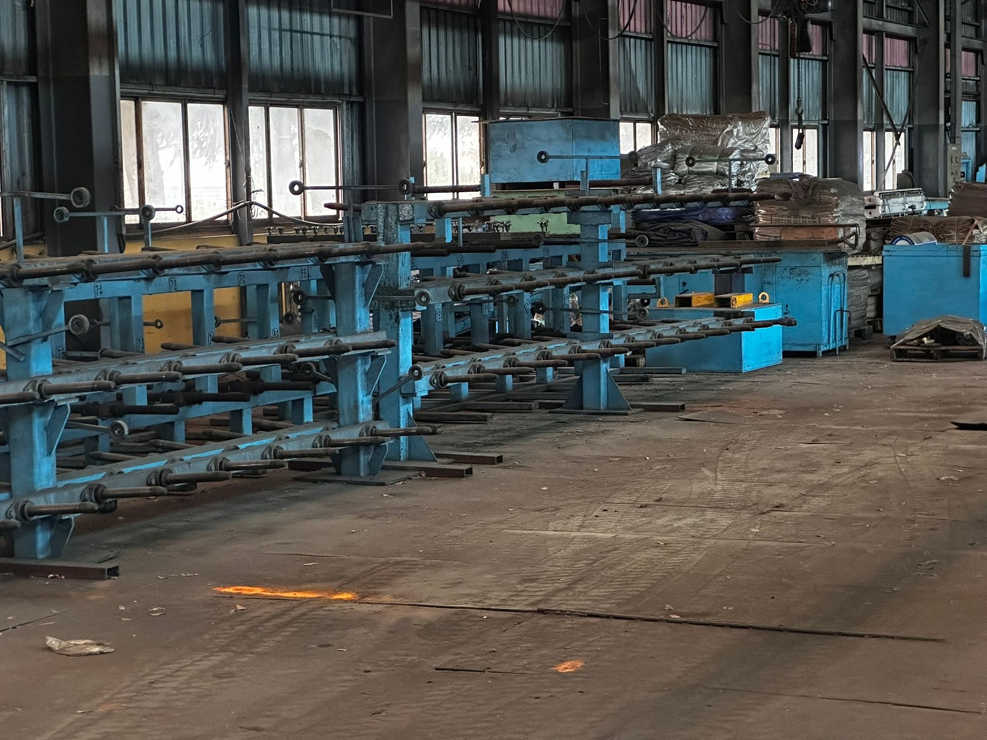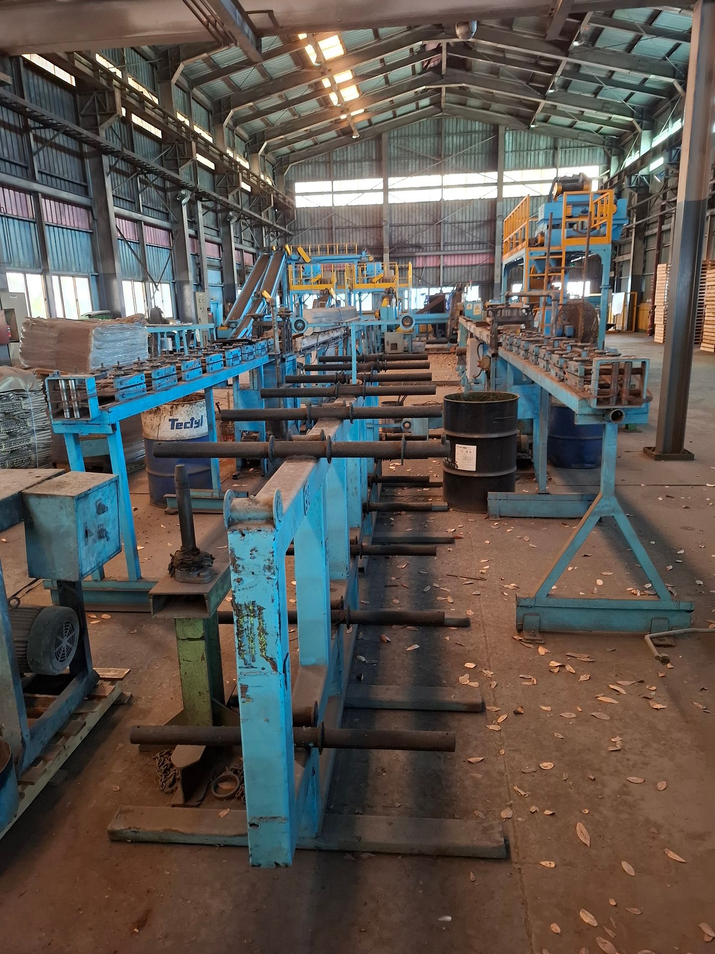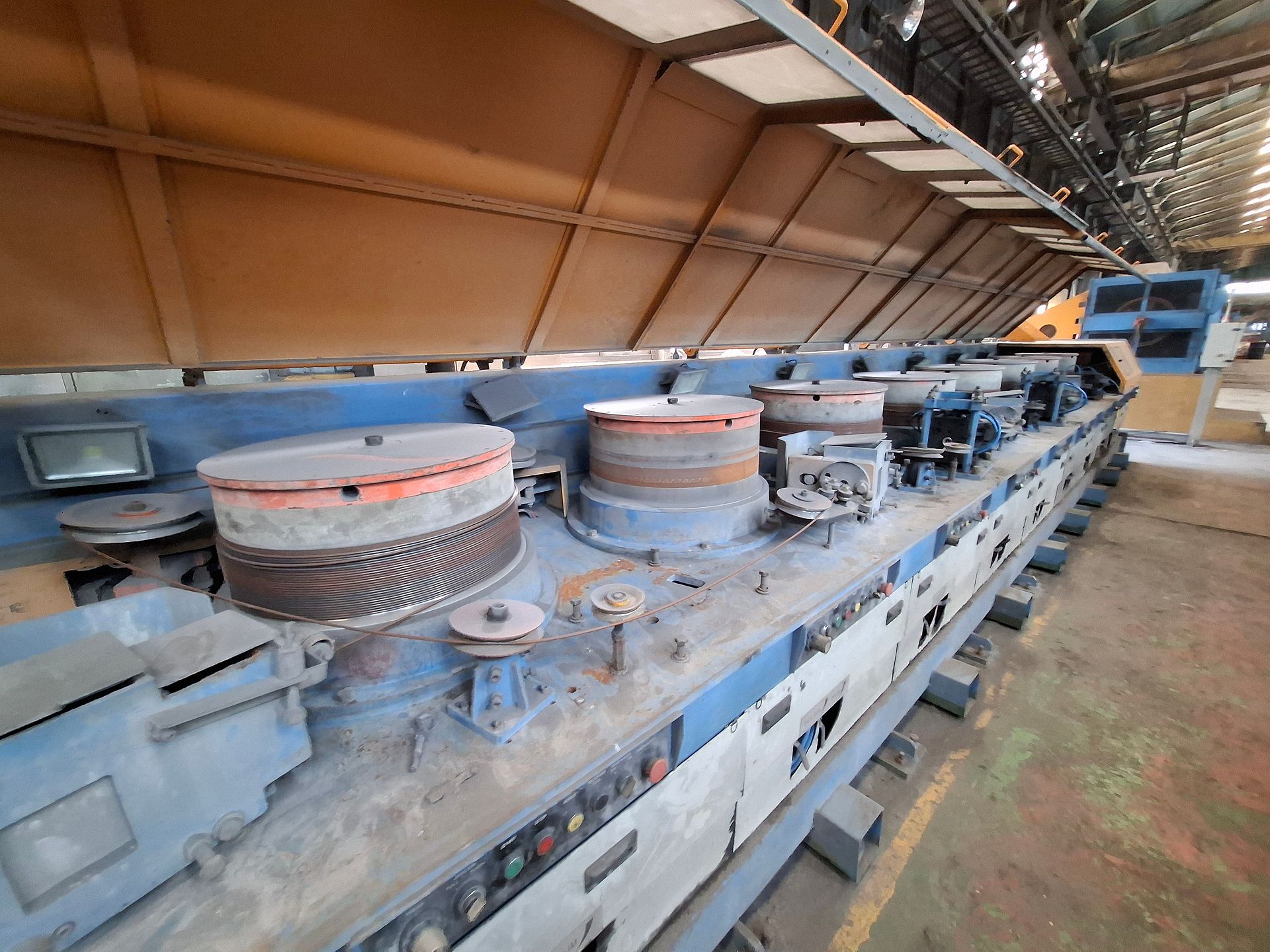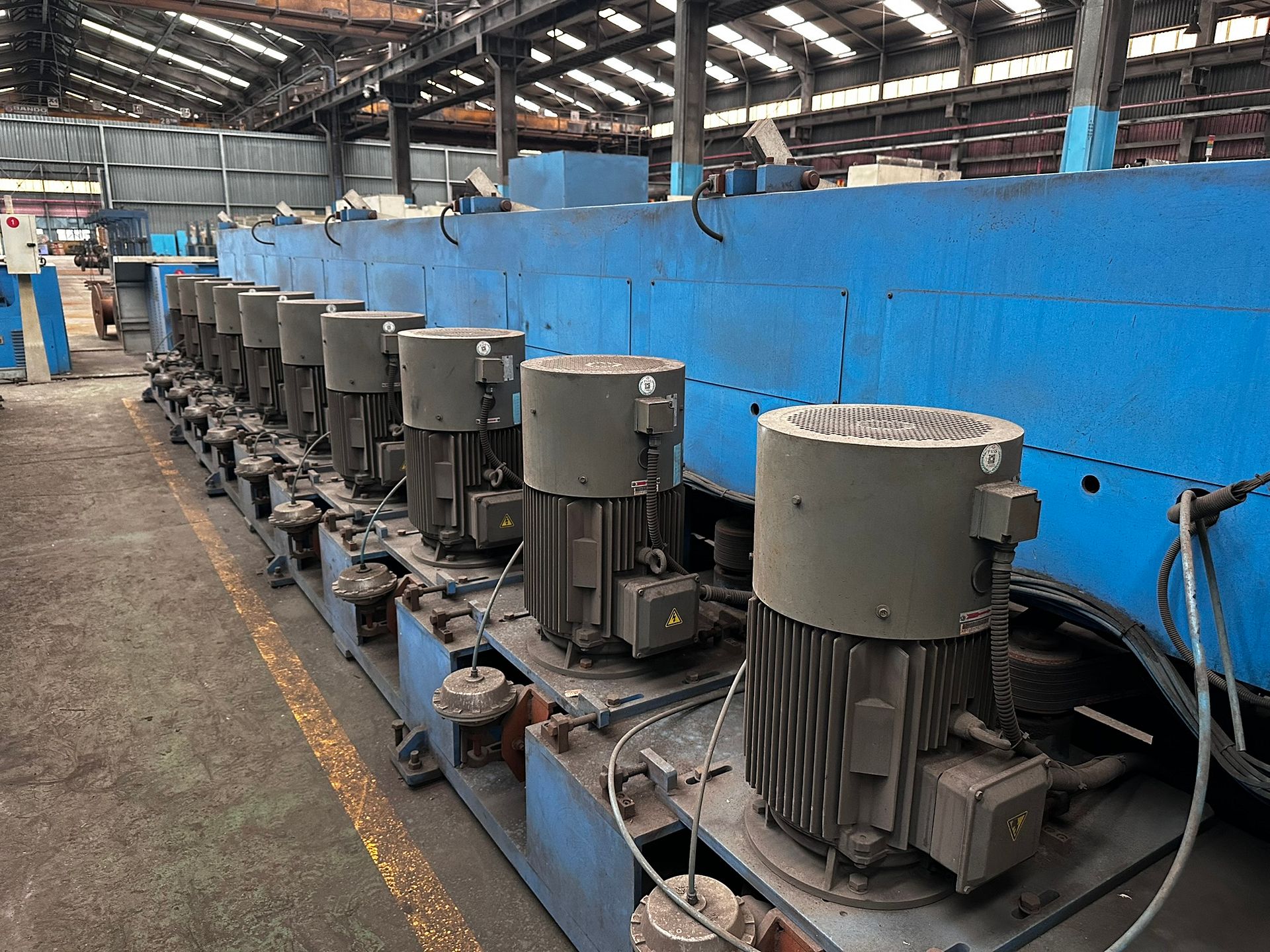 KOSteel production line for the manufacturing of its globally recognized BUNDREX® steel fiber, this facility integrates high-speed wire transformation systems with shaping and packaging. It includes dry and wet drawing machines capable of reducing carbon steel wire from 6.5 mm to 0.5 mm at speeds exceeding 1,000 m/min, followed by pointing, welding, rewinding, and modular fiber shaping units. Bundling and packaging systems complete the process, enabling industrial-scale output of reinforcement-grade steel fibers. Support equipment such as descalers, heat treatment units, tensile testers, and forklifts ensure full-cycle processing and operational autonomy.