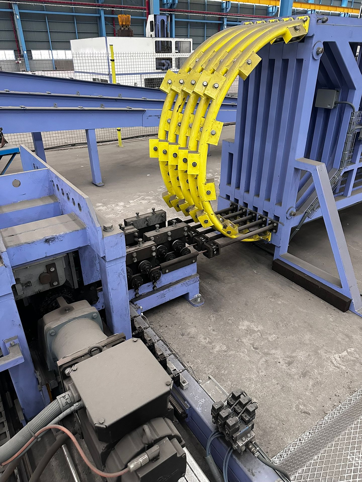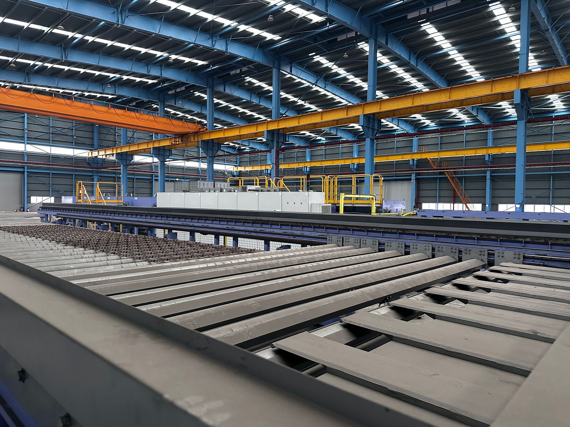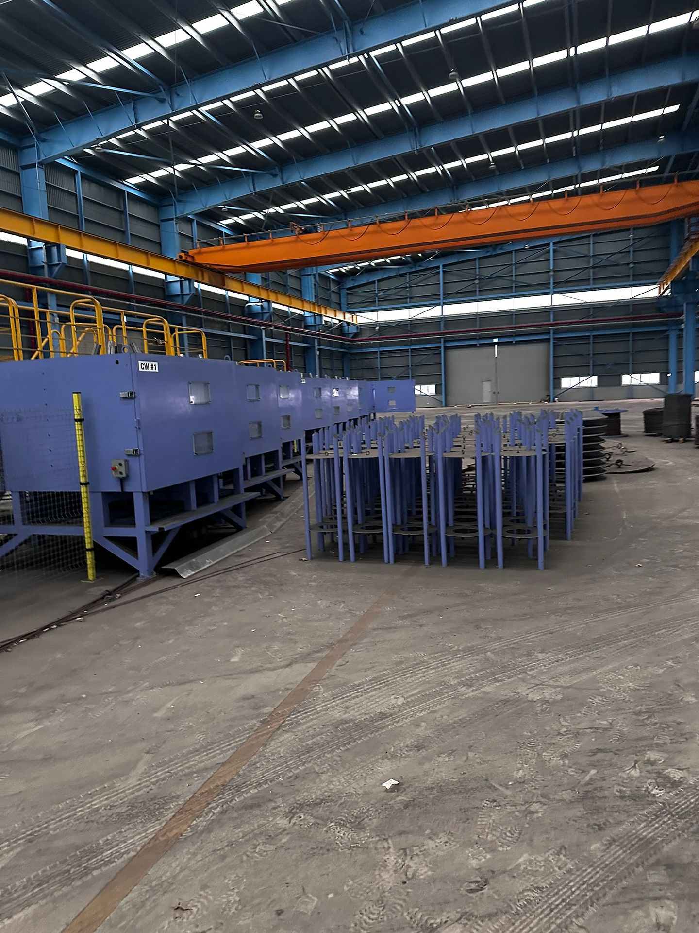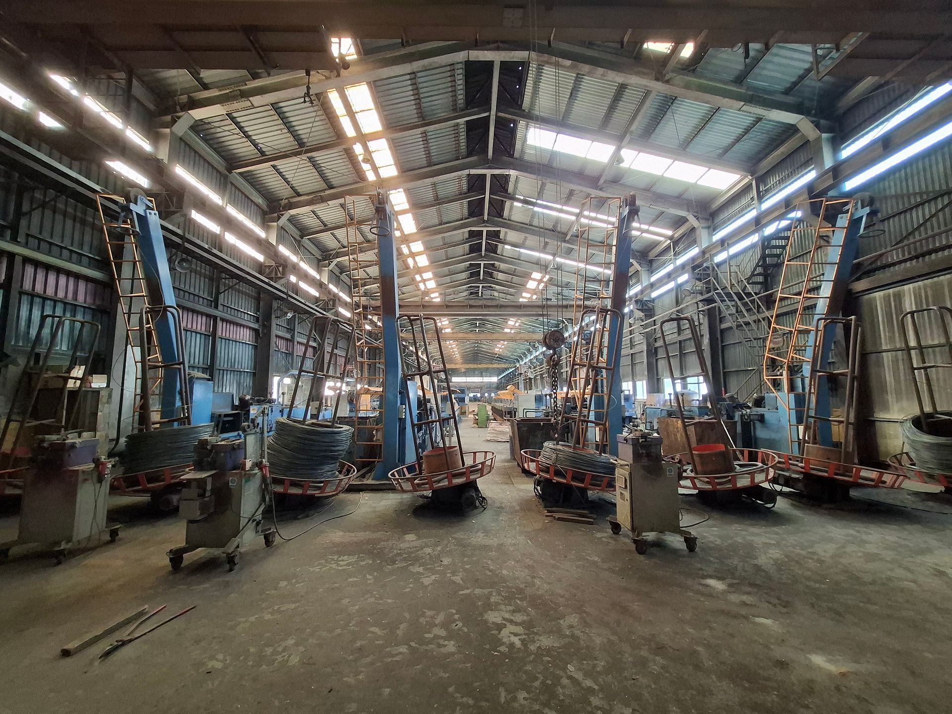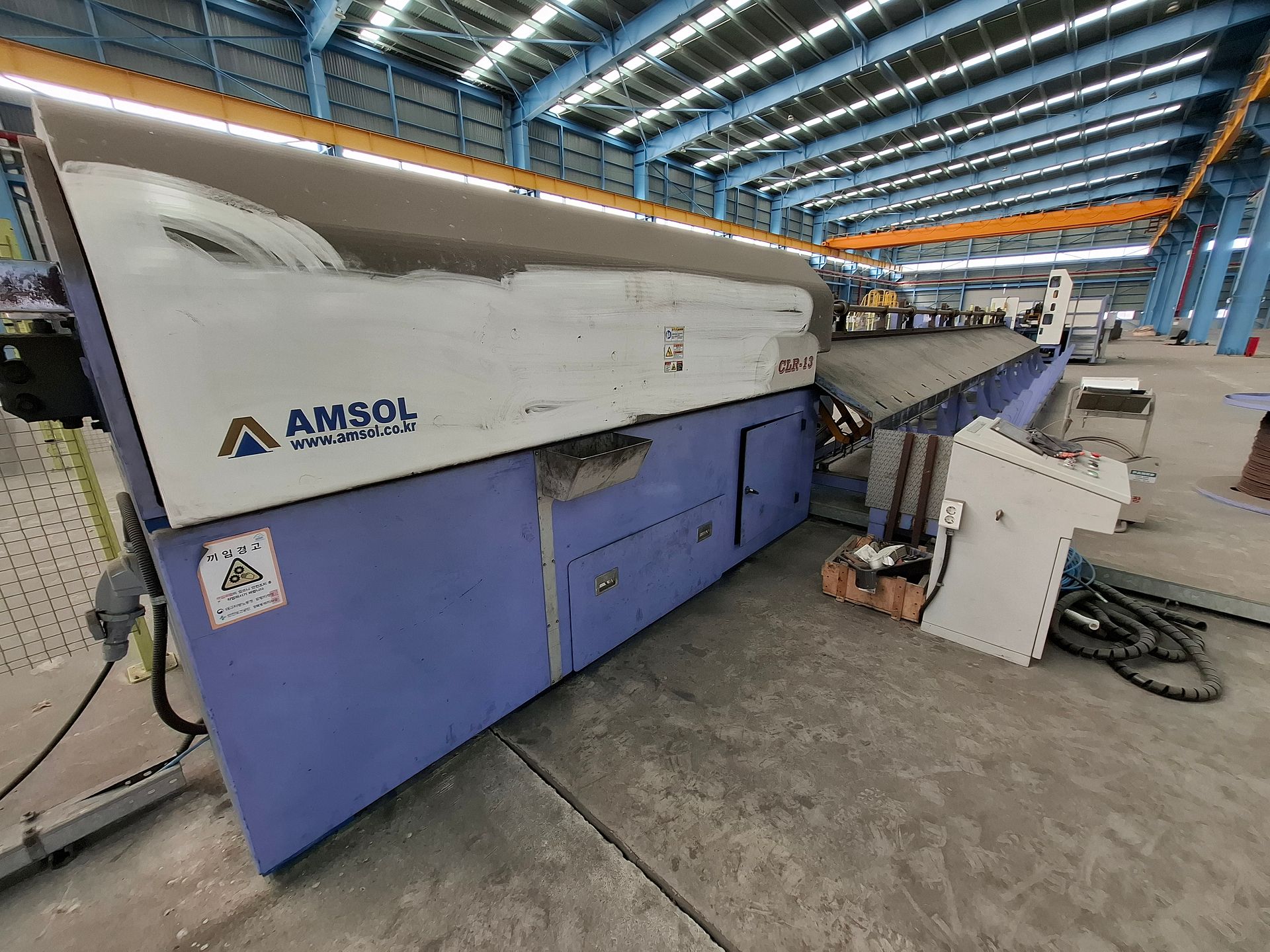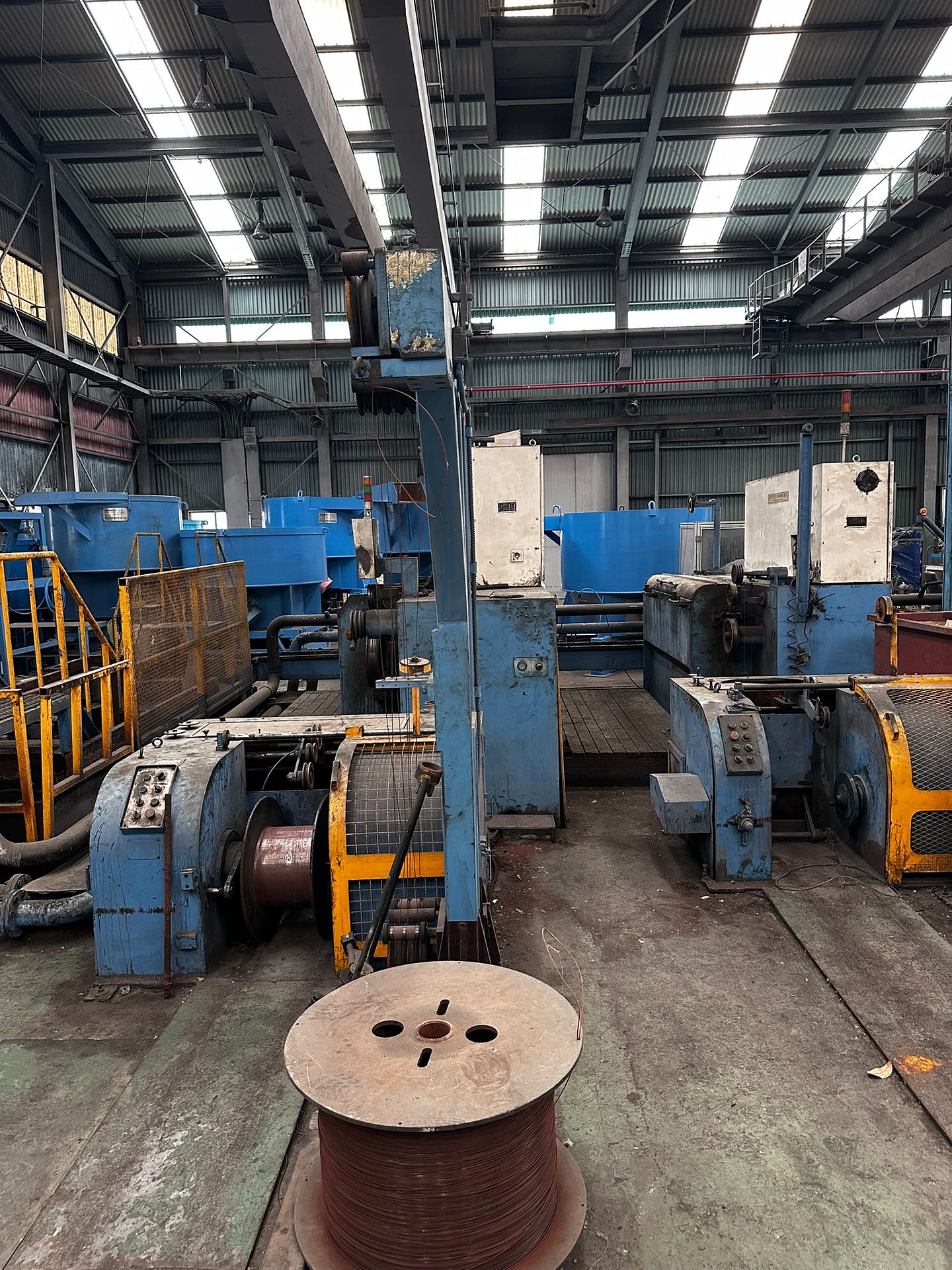 KOSteel production line for the manufacturing of its globally recognized BUNDREX® steel fiber, this facility integrates high-speed wire transformation systems with shaping and packaging. It includes dry and wet drawing machines capable of reducing carbon steel wire from 6.5 mm to 0.5 mm at speeds exceeding 1,000 m/min, followed by pointing, welding, rewinding, and modular fiber shaping units. Bundling and packaging systems complete the process, enabling industrial-scale output of reinforcement-grade steel fibers. Support equipment such as descalers, heat treatment units, tensile testers, and forklifts ensure full-cycle processing and operational autonomy.