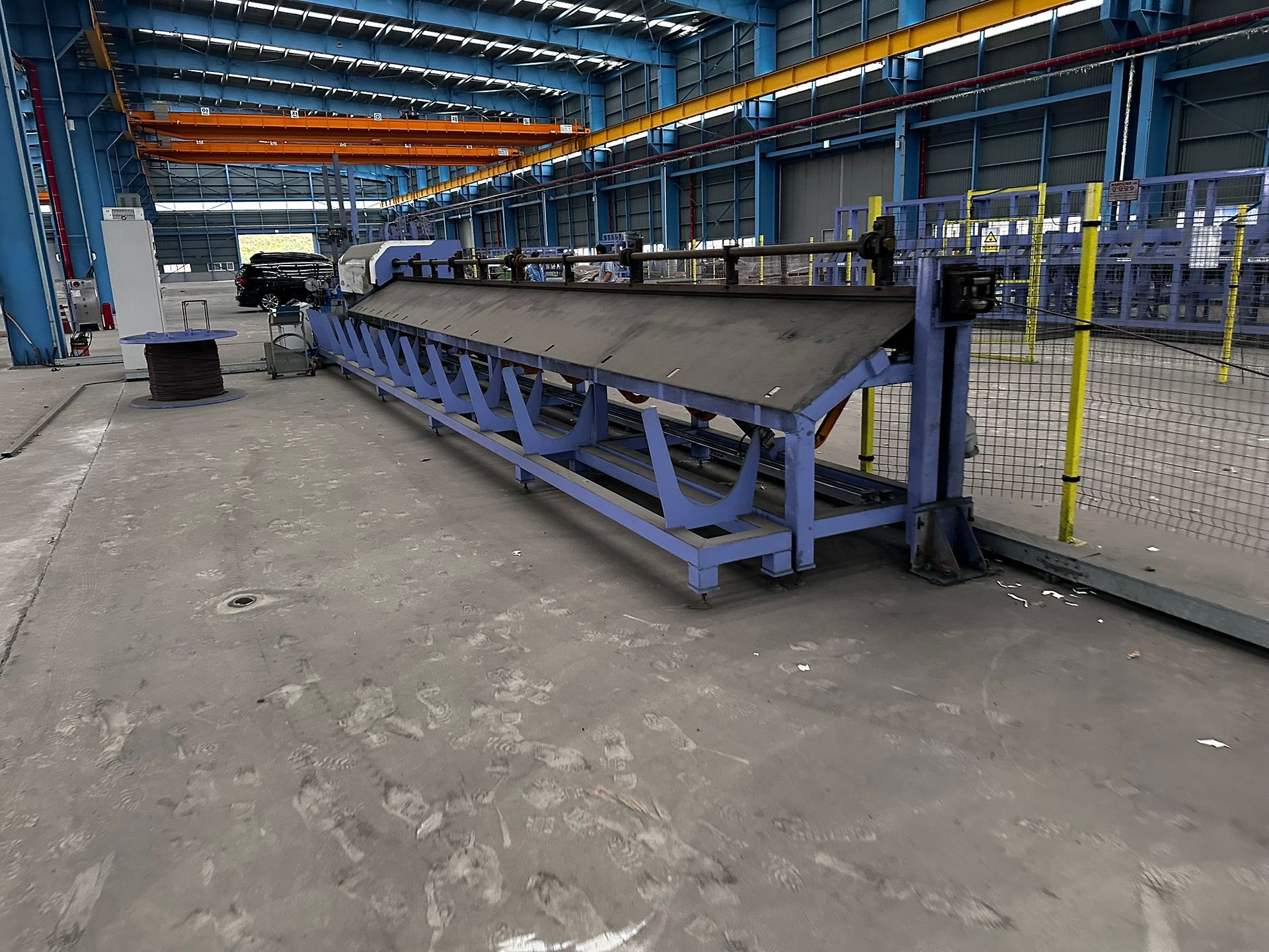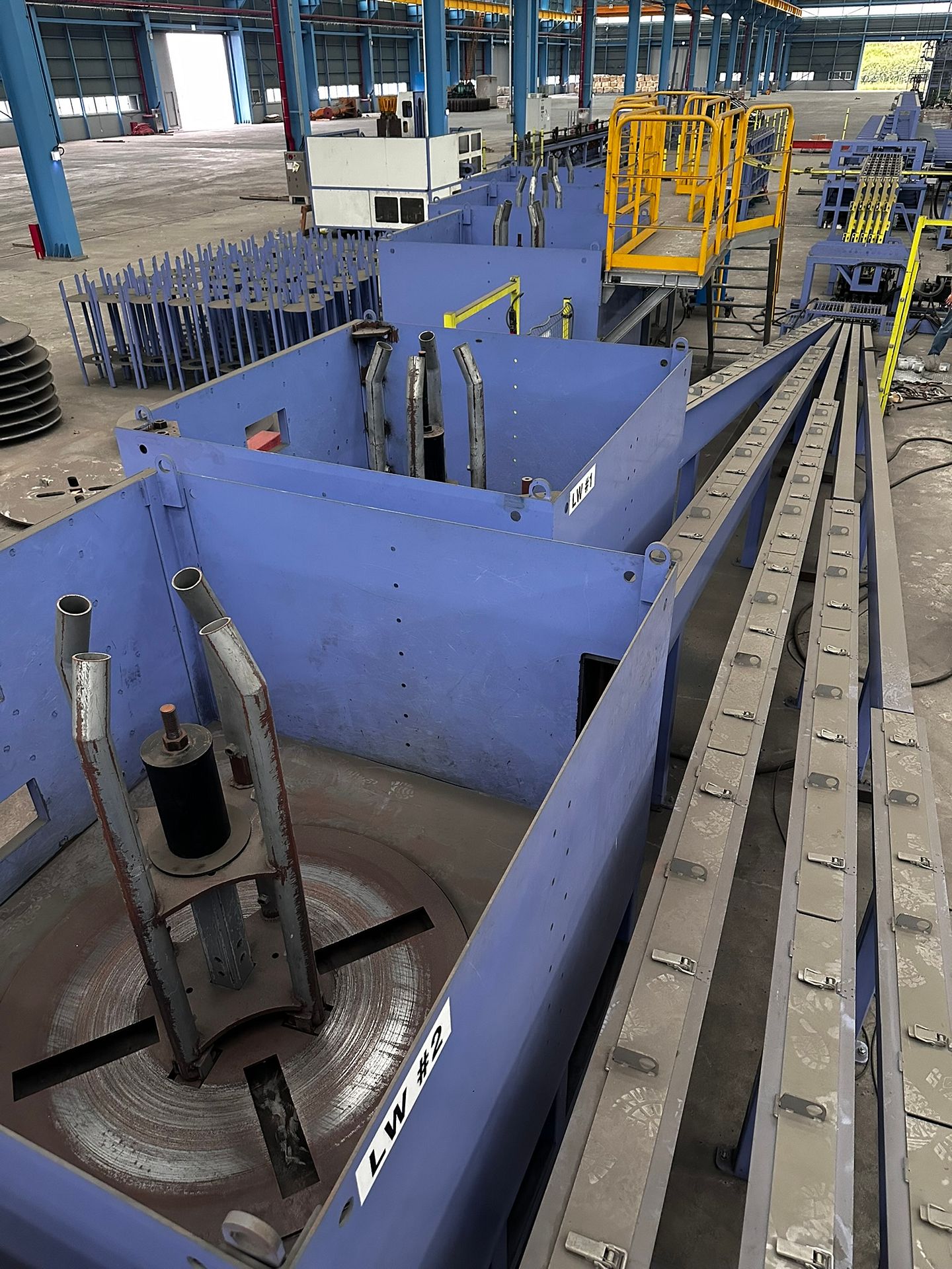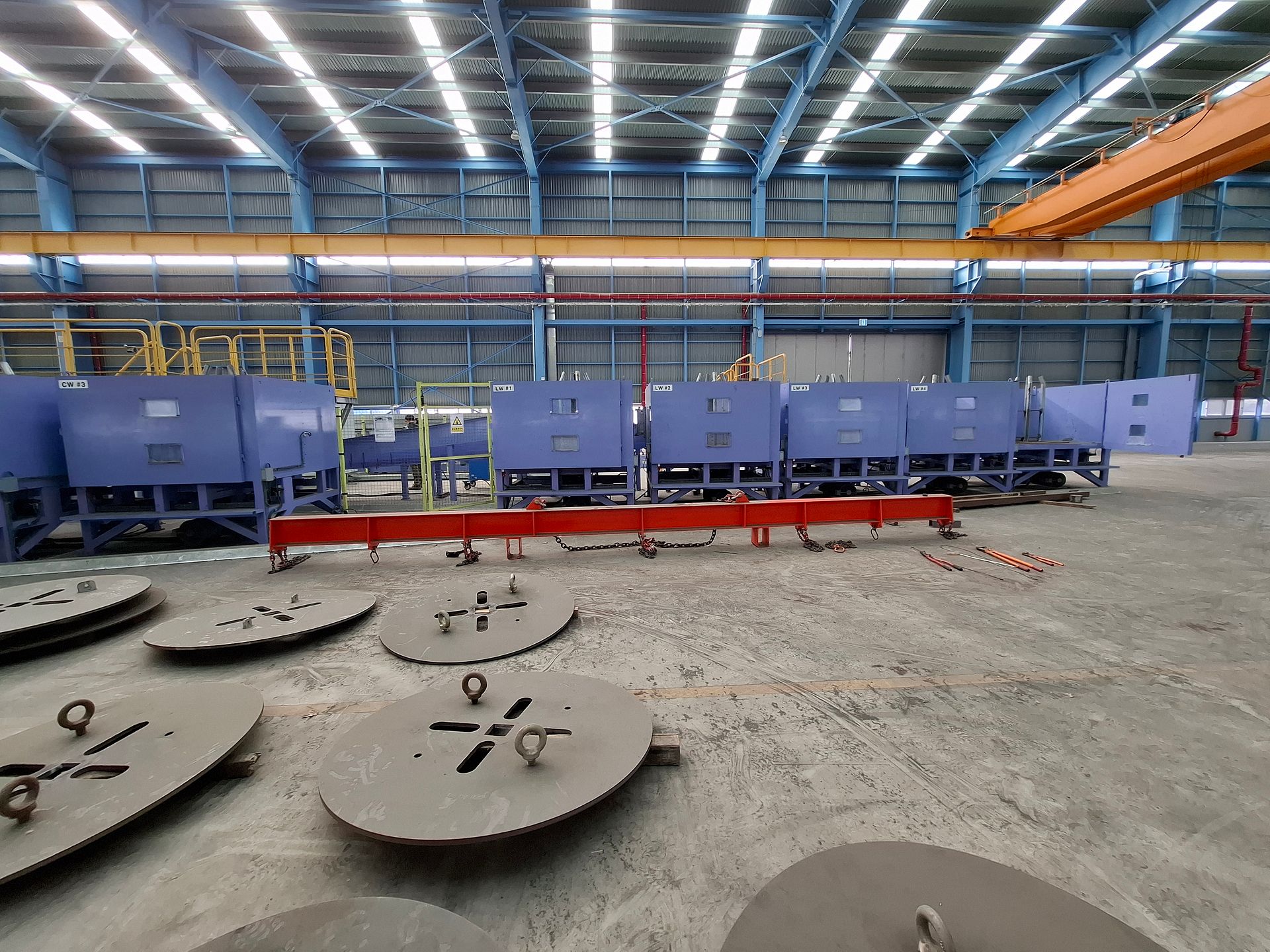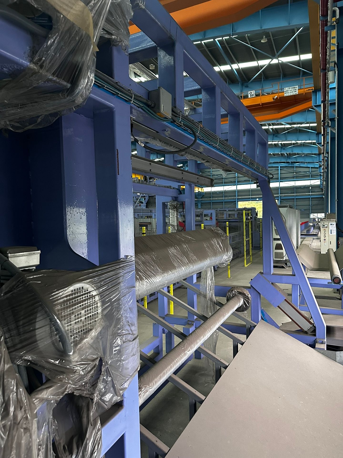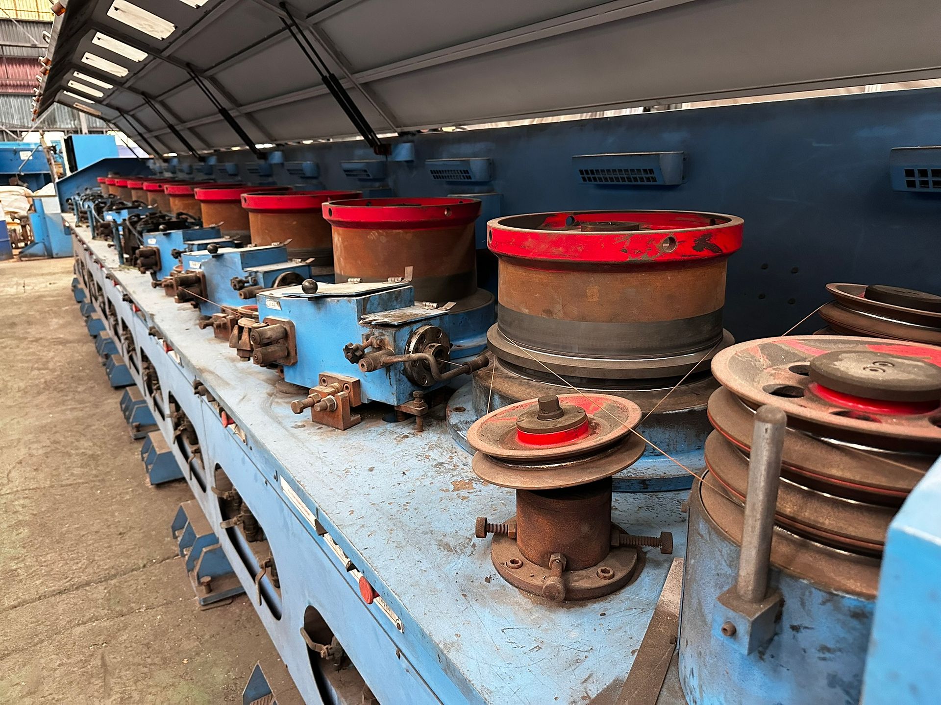 KOSteel production line for the manufacturing of its globally recognized BUNDREX® steel fiber, this facility integrates high-speed wire transformation systems with shaping and packaging. It includes dry and wet drawing machines capable of reducing carbon steel wire from 6.5 mm to 0.5 mm at speeds exceeding 1,000 m/min, followed by pointing, welding, rewinding, and modular fiber shaping units. Bundling and packaging systems complete the process, enabling industrial-scale output of reinforcement-grade steel fibers. Support equipment such as descalers, heat treatment units, tensile testers, and forklifts ensure full-cycle processing and operational autonomy.