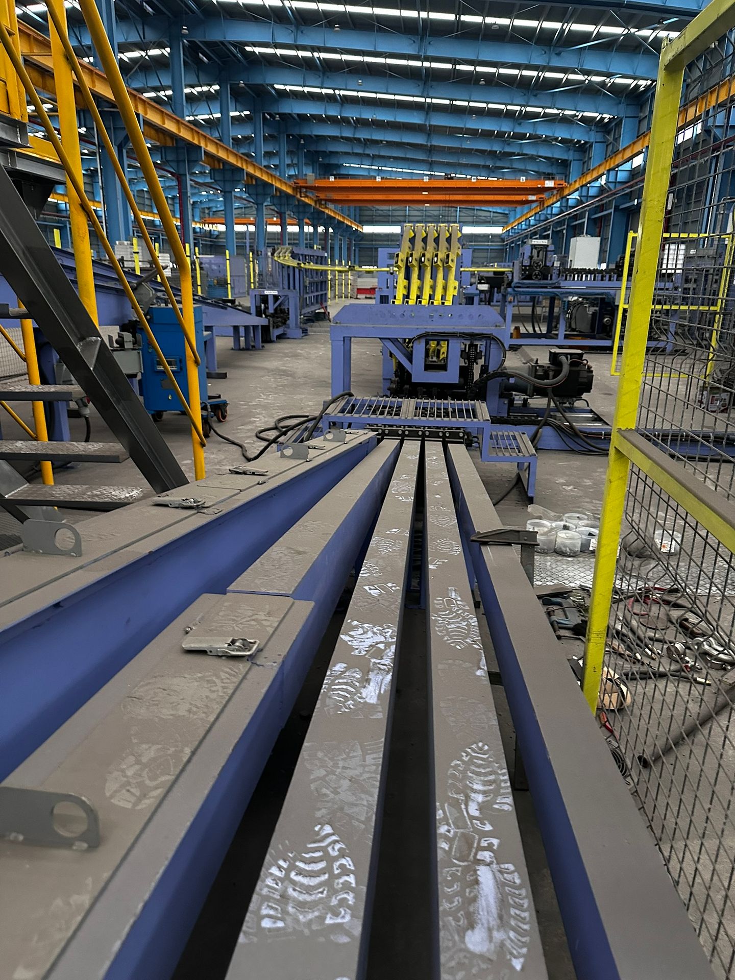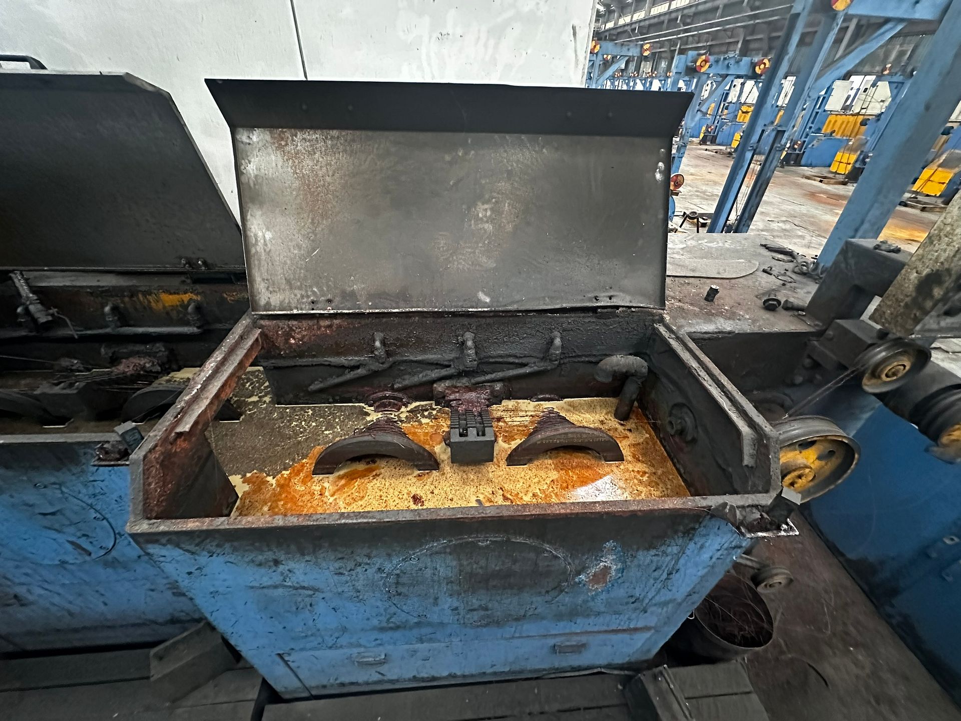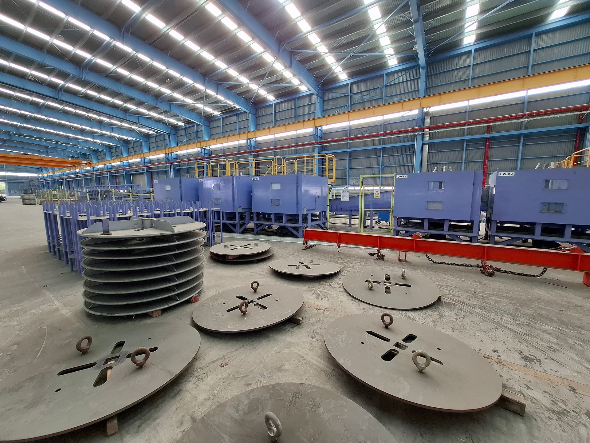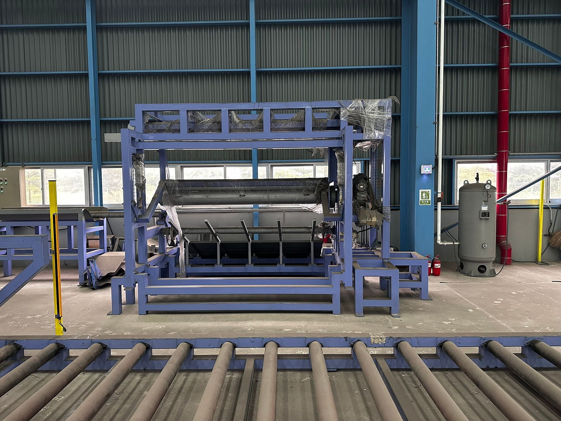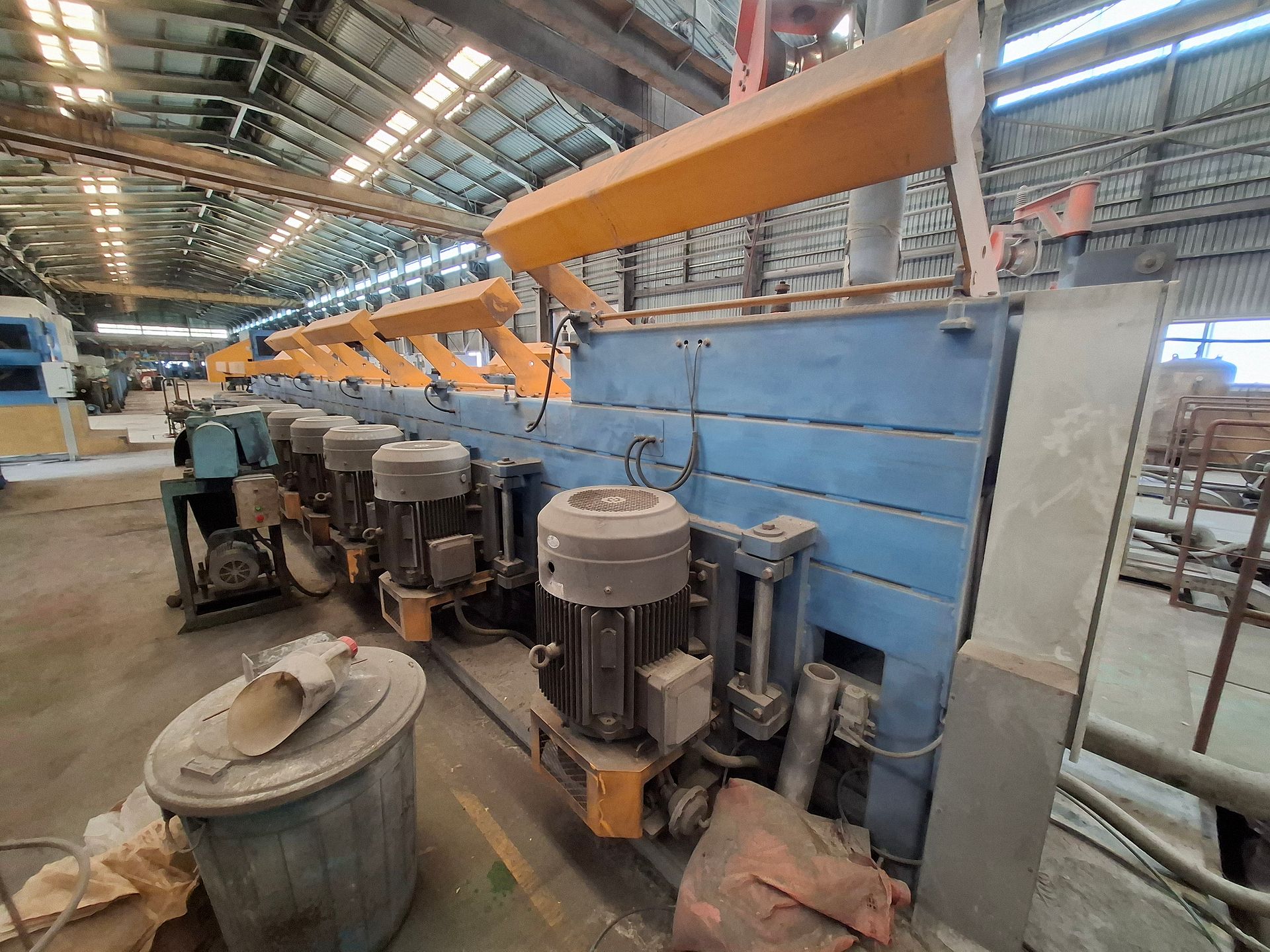 KOSteel production line for the manufacturing of its globally recognized BUNDREX® steel fiber, this facility integrates high-speed wire transformation systems with shaping and packaging. It includes dry and wet drawing machines capable of reducing carbon steel wire from 6.5 mm to 0.5 mm at speeds exceeding 1,000 m/min, followed by pointing, welding, rewinding, and modular fiber shaping units. Bundling and packaging systems complete the process, enabling industrial-scale output of reinforcement-grade steel fibers. Support equipment such as descalers, heat treatment units, tensile testers, and forklifts ensure full-cycle processing and operational autonomy.