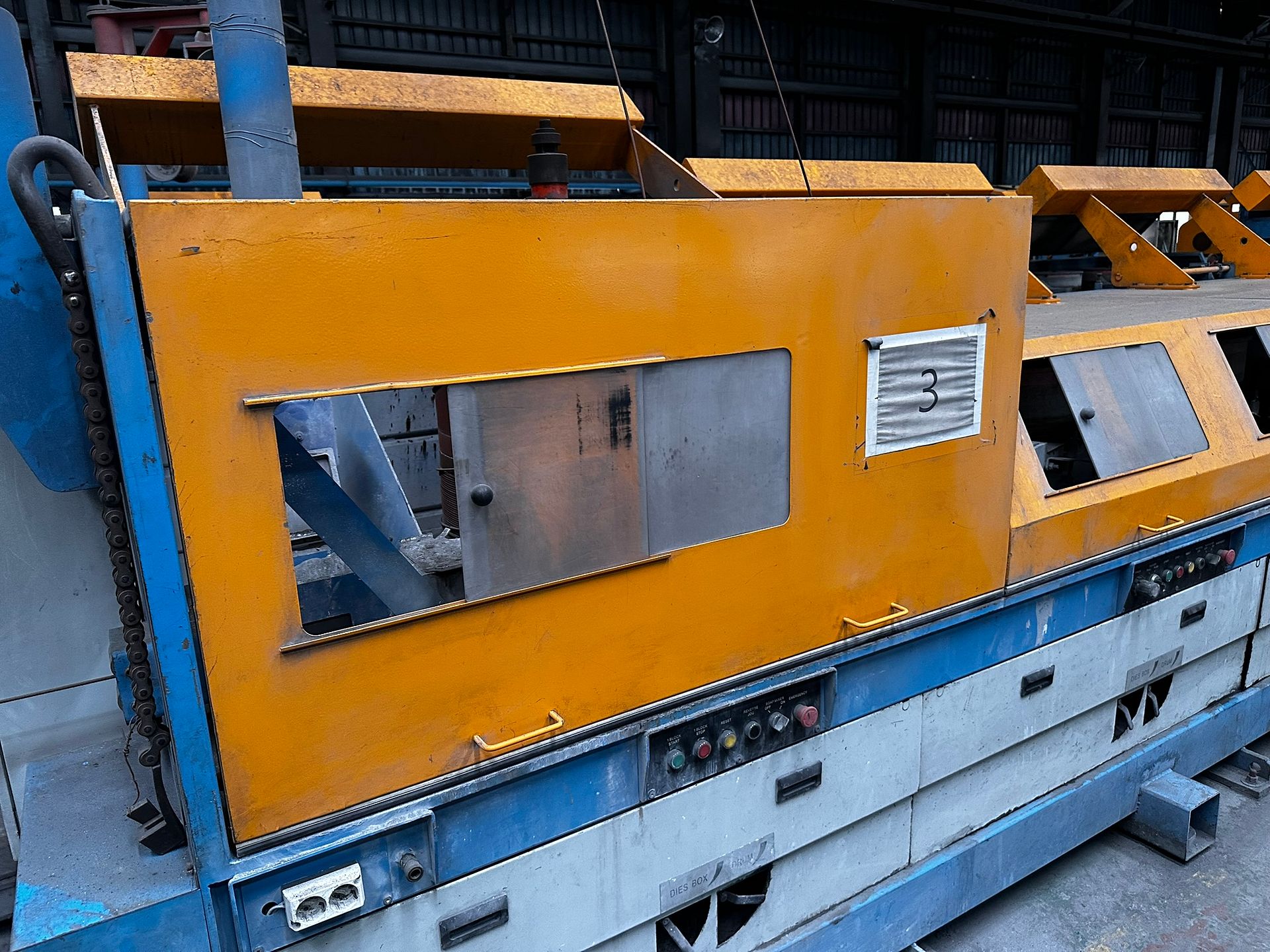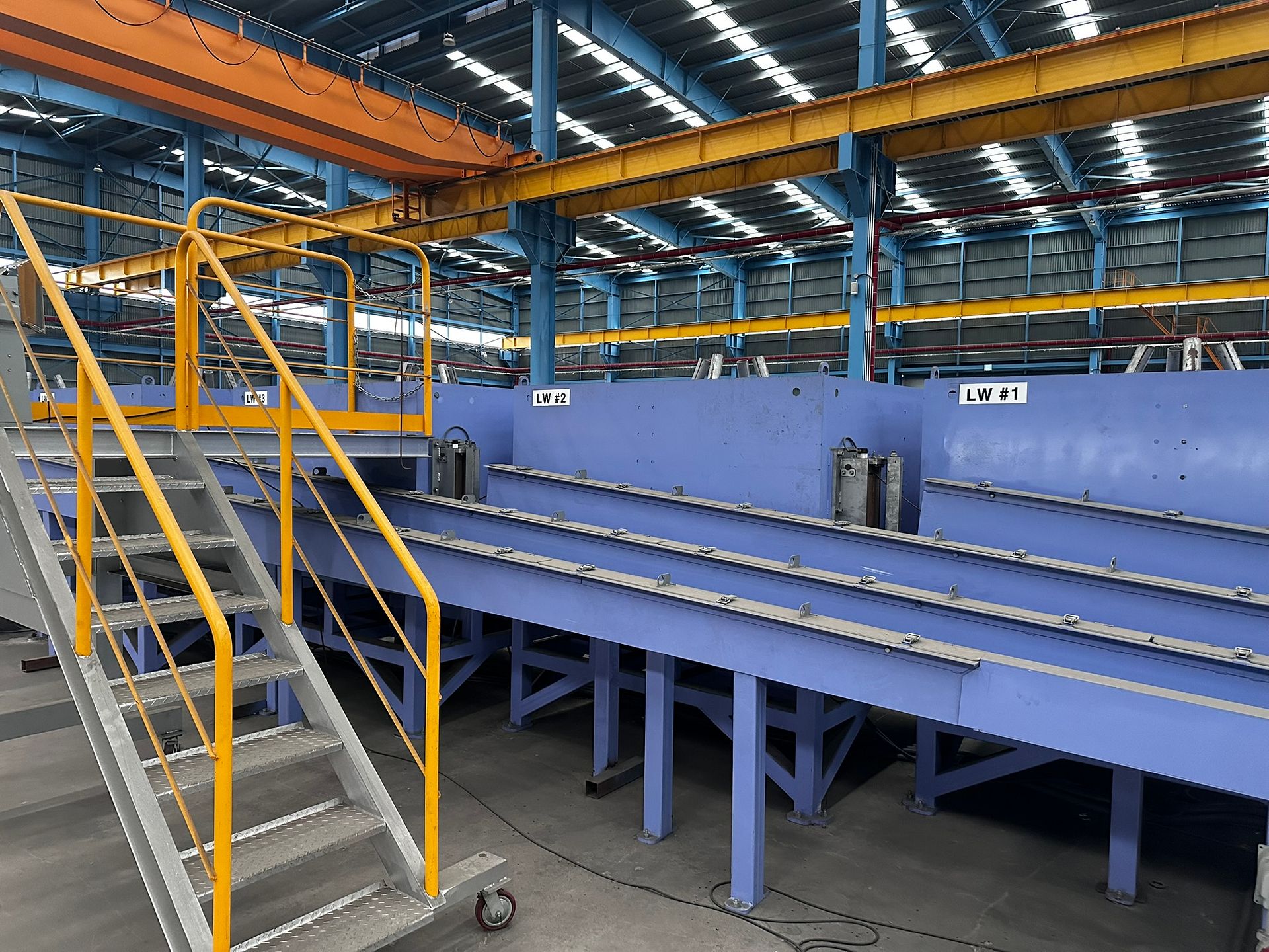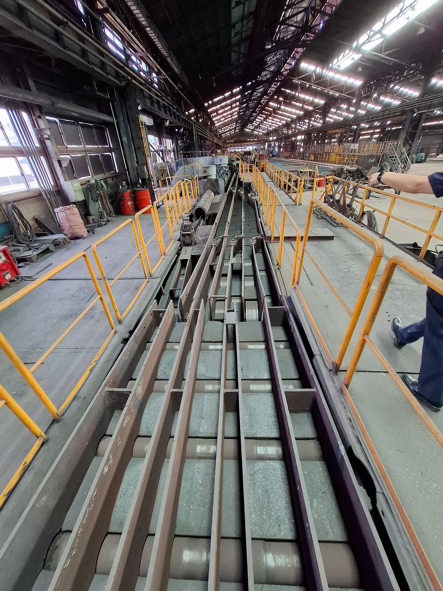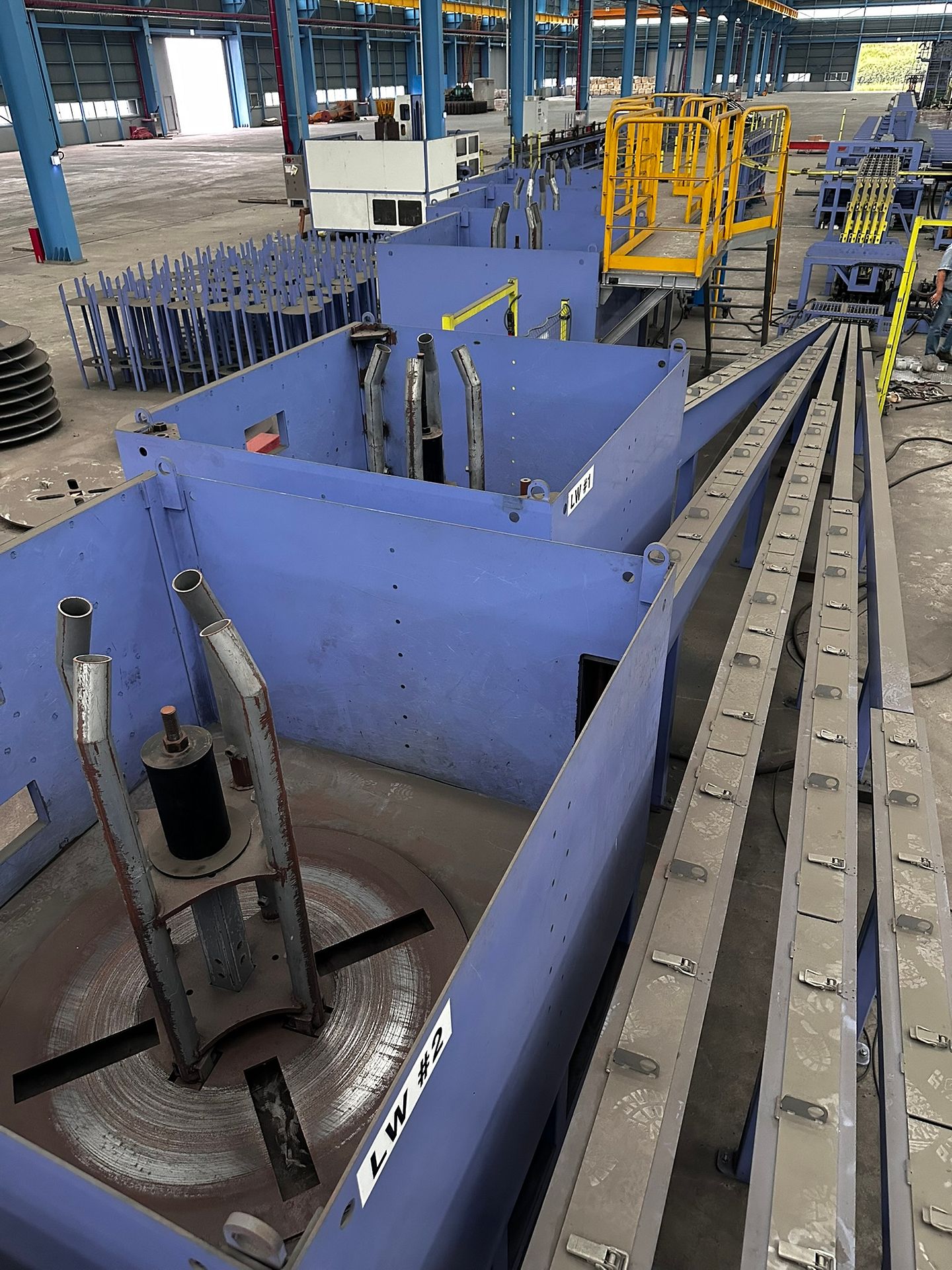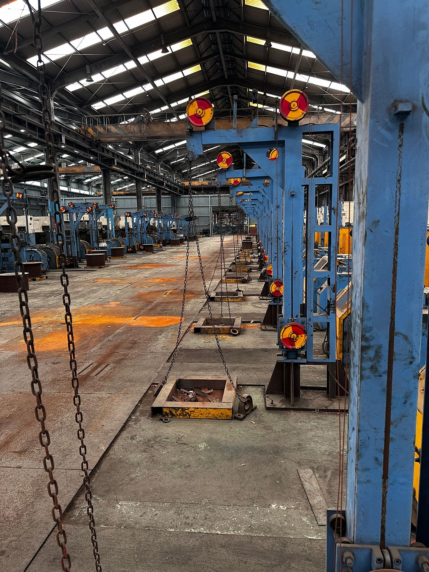 KOSteel production line for the manufacturing of its globally recognized BUNDREX® steel fiber, this facility integrates high-speed wire transformation systems with shaping and packaging. It includes dry and wet drawing machines capable of reducing carbon steel wire from 6.5 mm to 0.5 mm at speeds exceeding 1,000 m/min, followed by pointing, welding, rewinding, and modular fiber shaping units. Bundling and packaging systems complete the process, enabling industrial-scale output of reinforcement-grade steel fibers. Support equipment such as descalers, heat treatment units, tensile testers, and forklifts ensure full-cycle processing and operational autonomy.