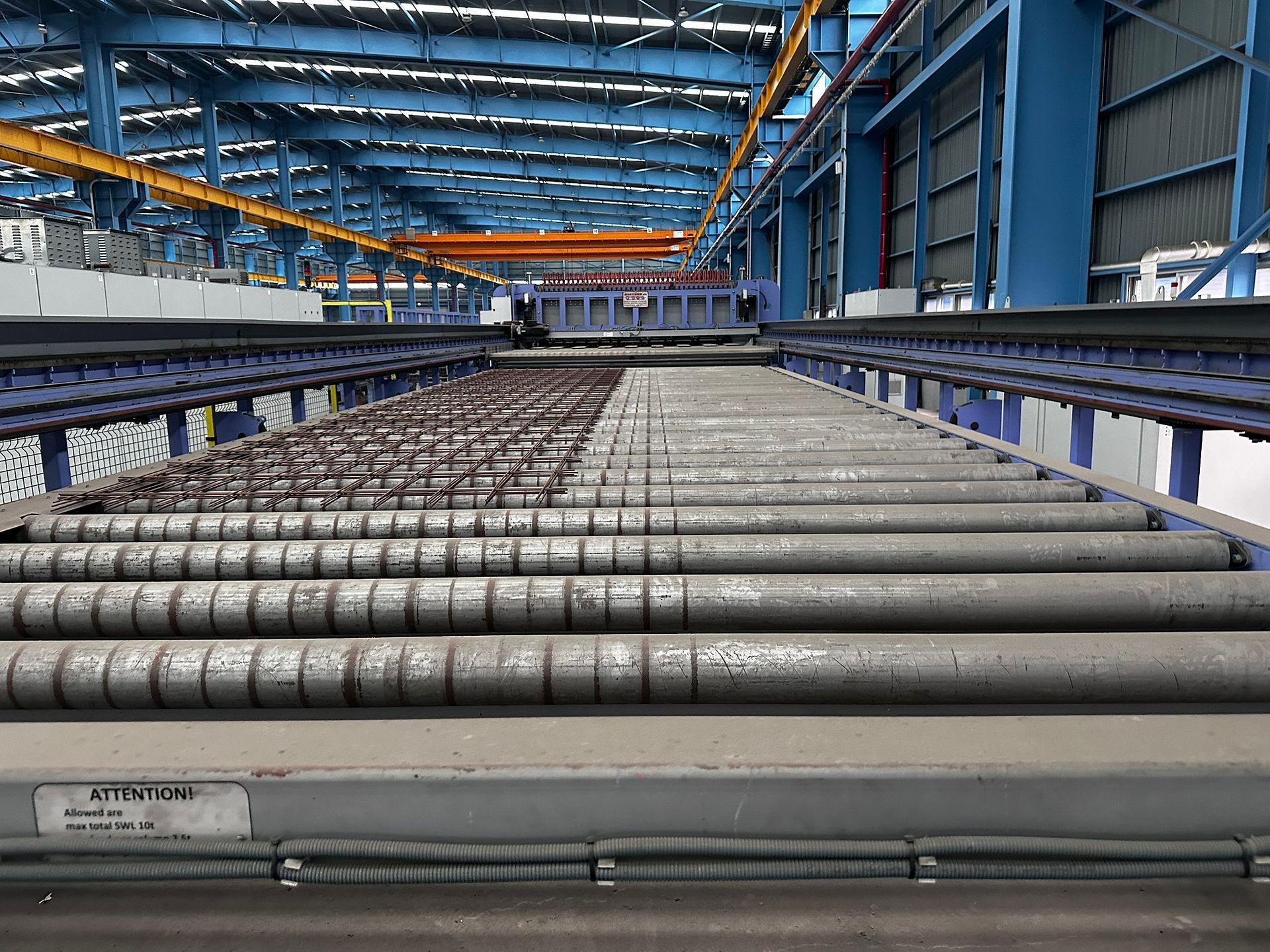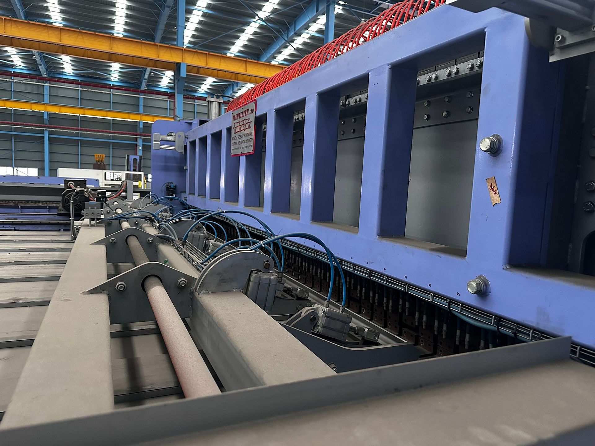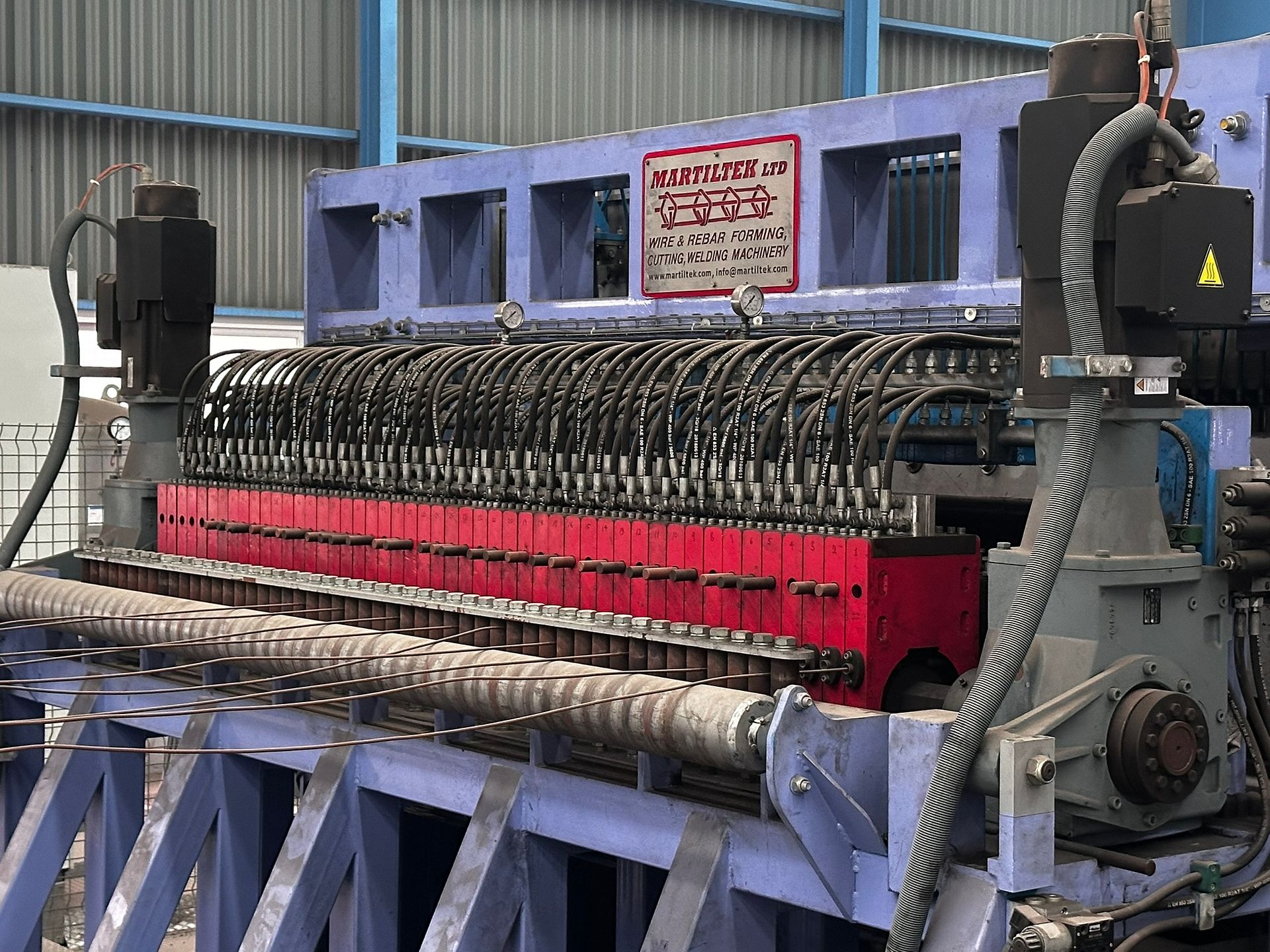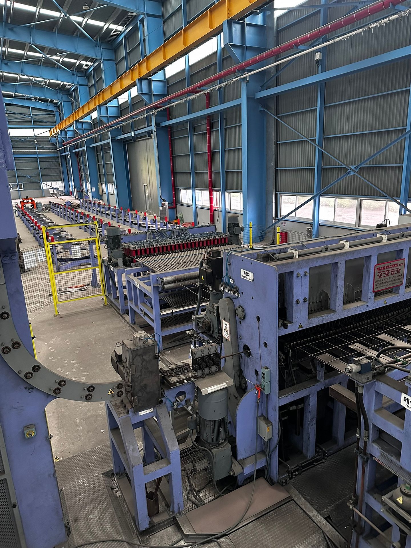 Two high-capacity, automated wire mesh welding lines by MARTILTEK, the biggest manufacturer of mesh welding machinery in Bulgaria. Designed for industrial-scale production of welded steel mesh panels, these machines are suitable for a wide range of wire diameters and mesh formats. Both lines are equipped with servo drives, Siemens PLCs, and cooling and power systems. Auxiliary machinery is made available with the main equipment.