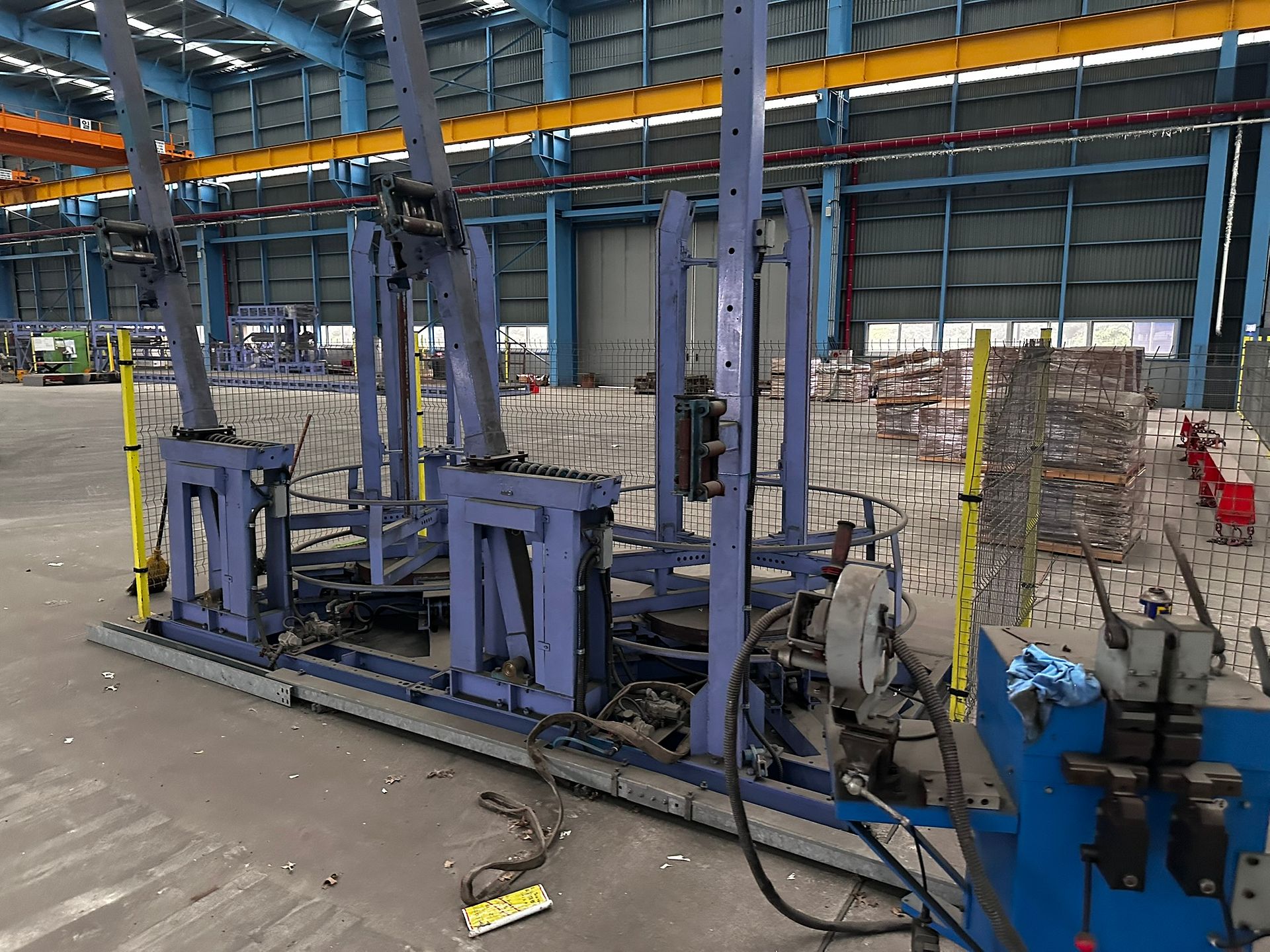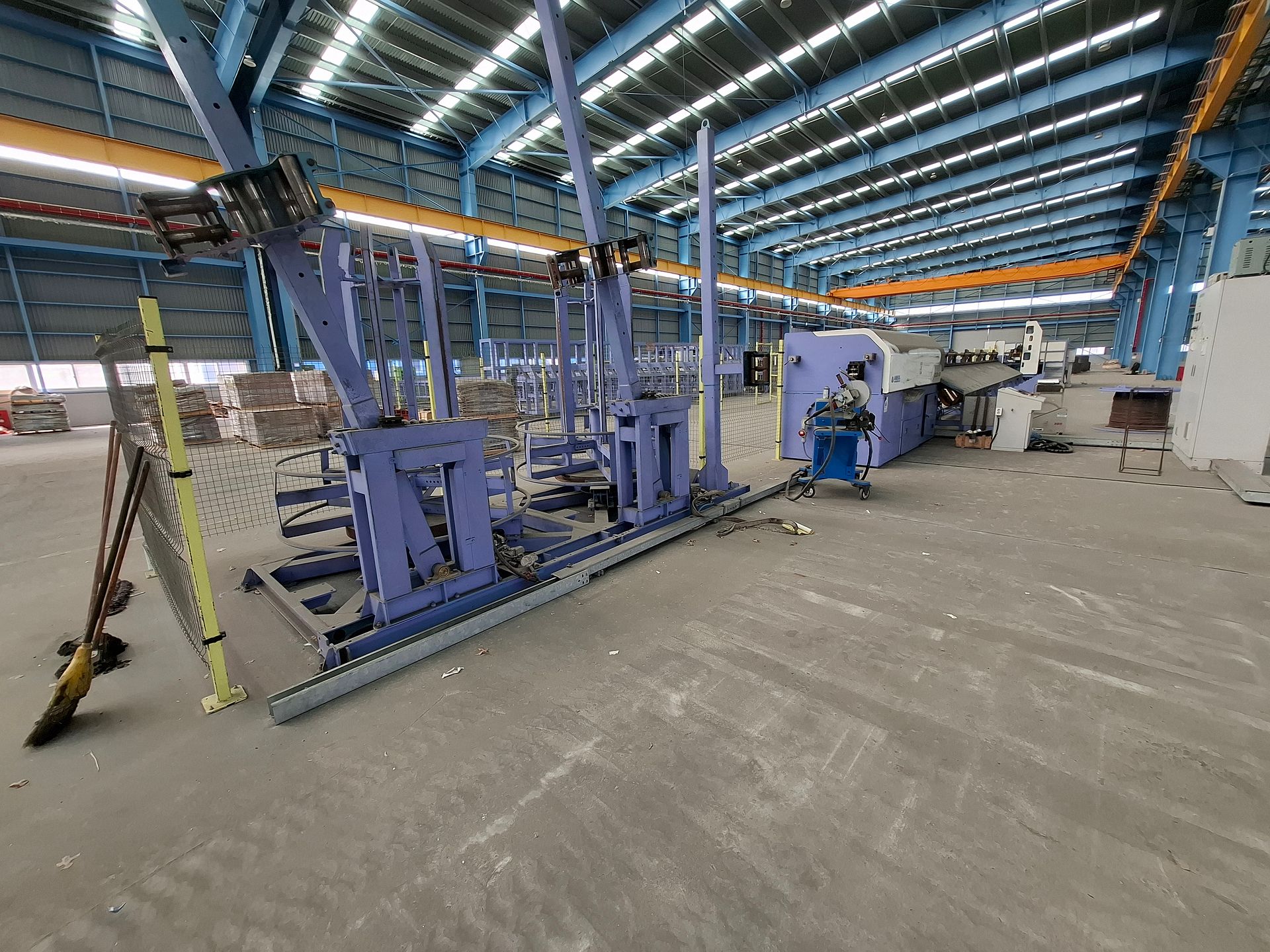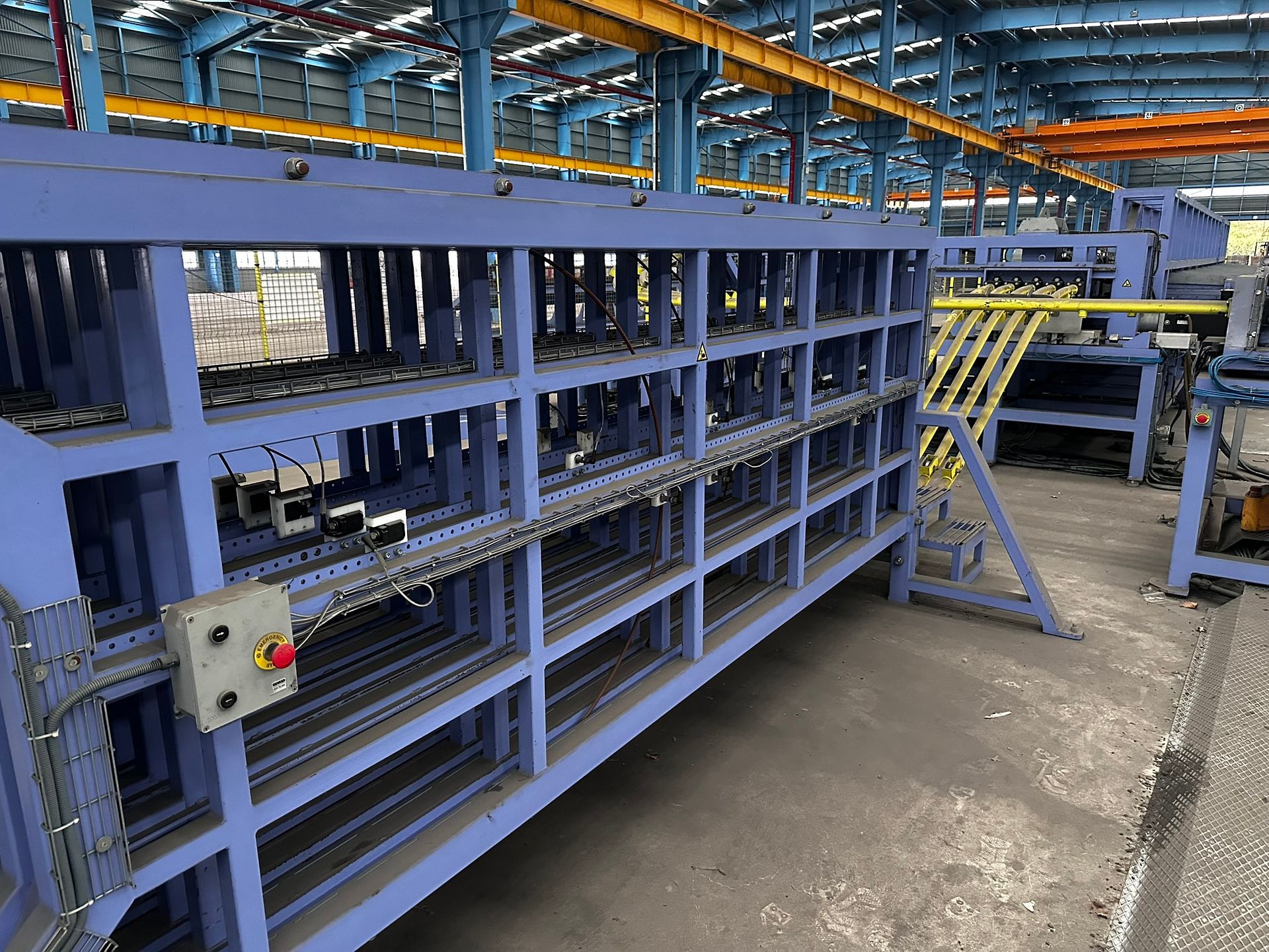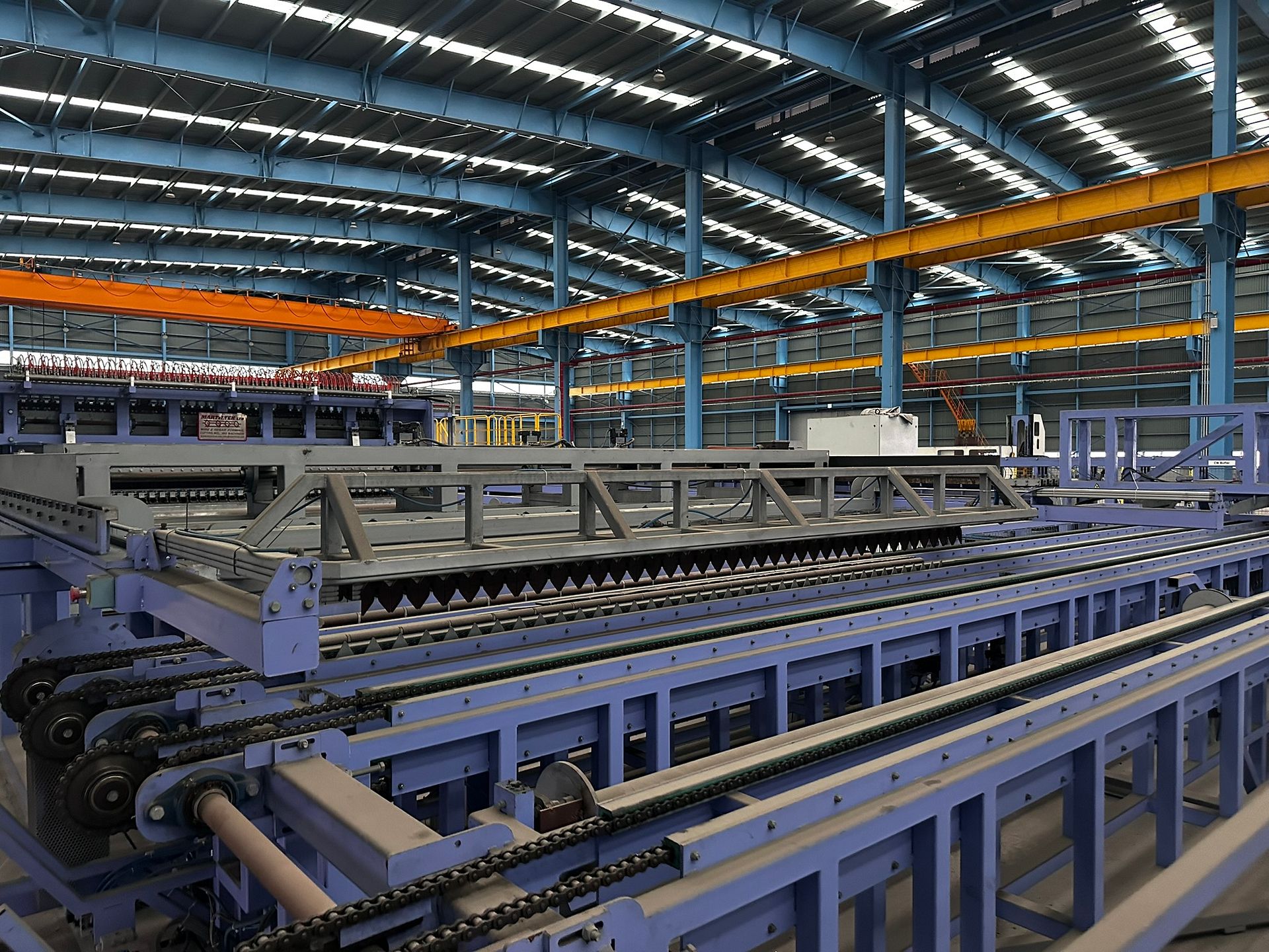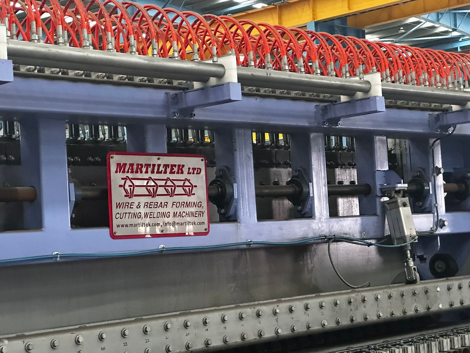Two high-capacity, automated wire mesh welding lines by MARTILTEK, the biggest manufacturer of mesh welding machinery in Bulgaria. Designed for industrial-scale production of welded steel mesh panels, these machines are suitable for a wide range of wire diameters and mesh formats. Both lines are equipped with servo drives, Siemens PLCs, and cooling and power systems. Auxiliary machinery is made available with the main equipment.