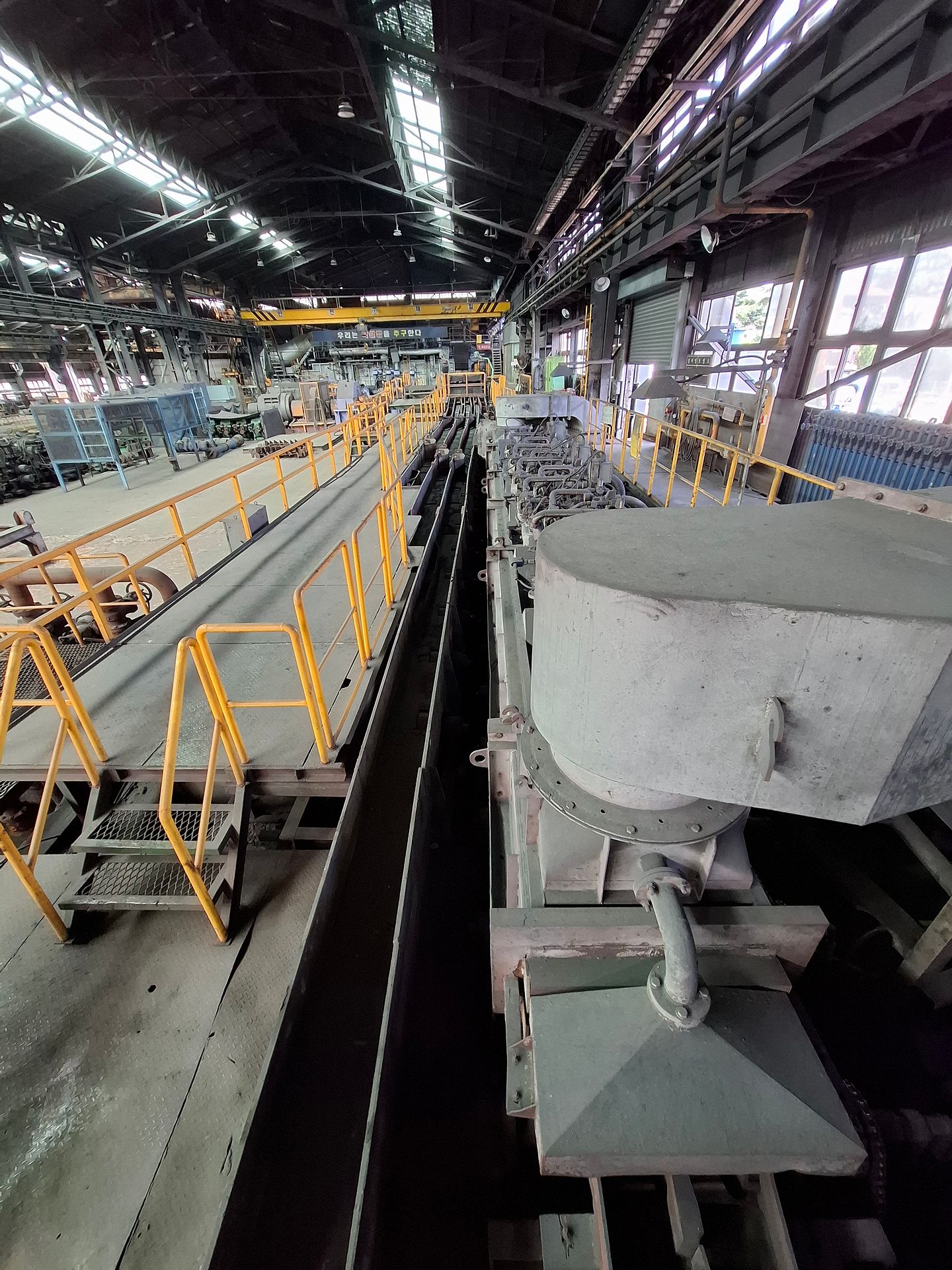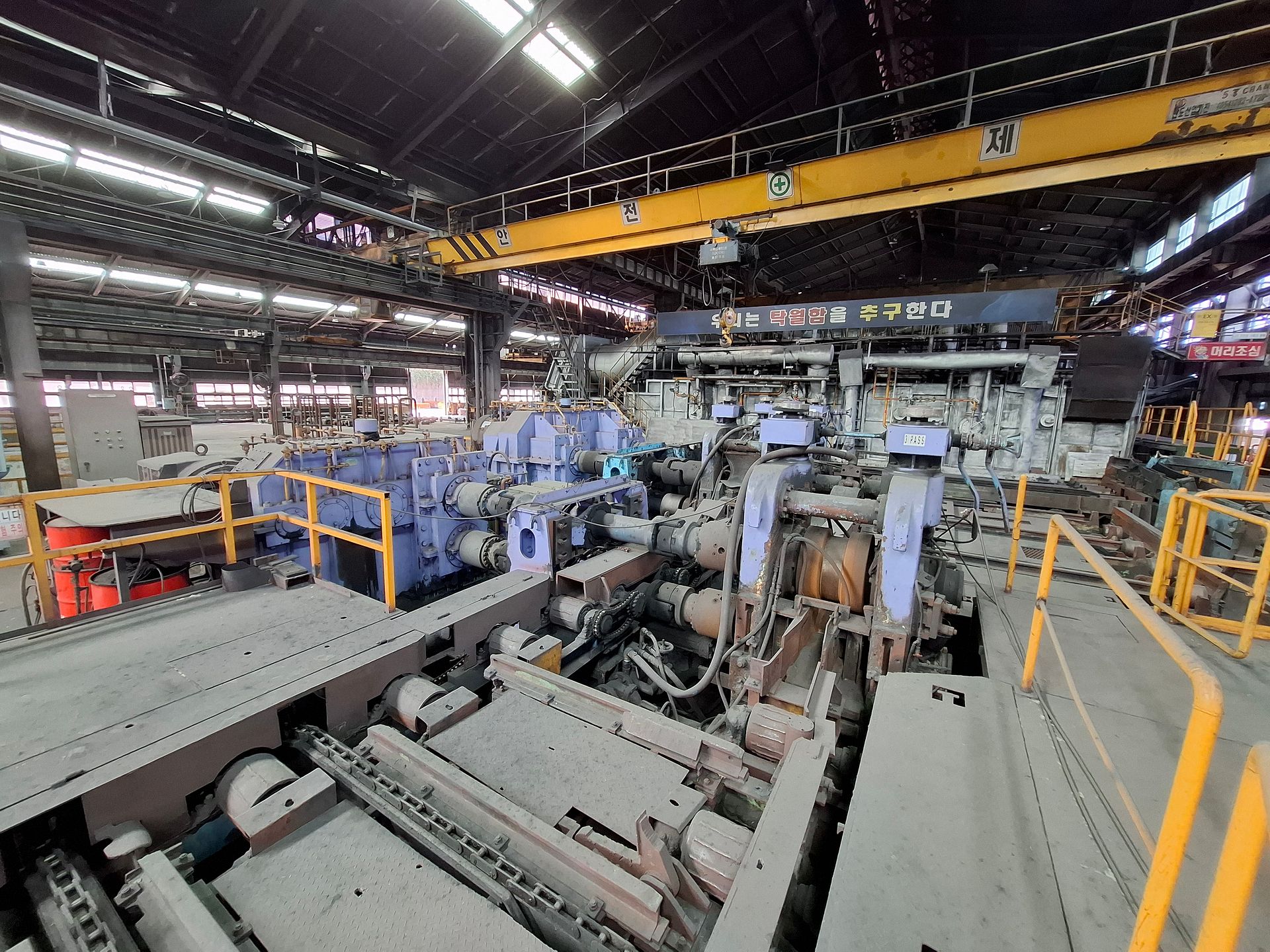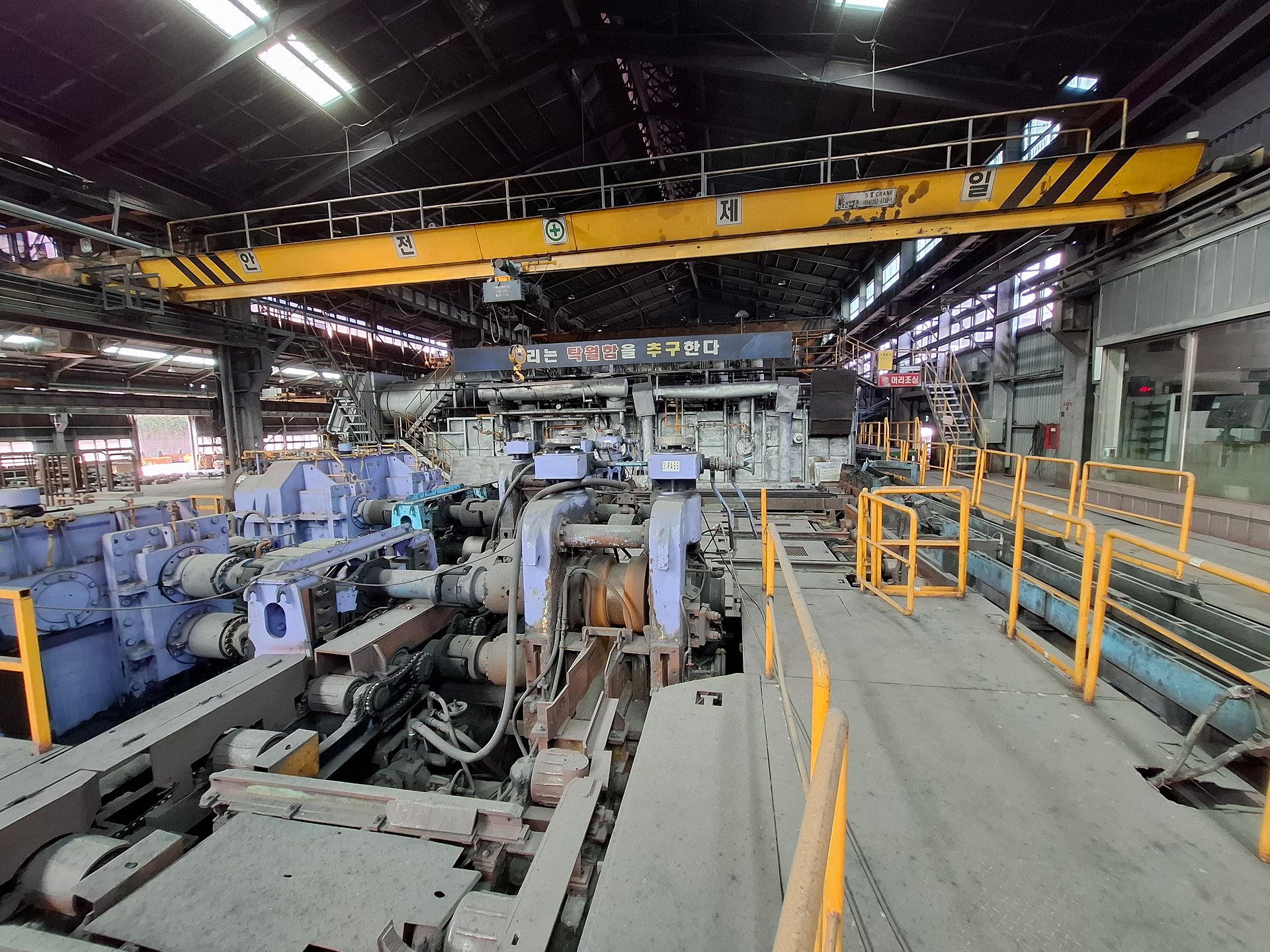 KOSteel rolling mill is capable of producing rebar and wire-rod in a compact layout, including consumables and spare parts for 2 years of operation and a fully equipped rolls and guides shop. The 2-strand wire-rod line features heavy-duty finishing blocks supplied by KOBELCO Japan in 2015 for precision wire rolling and dimensional stability.