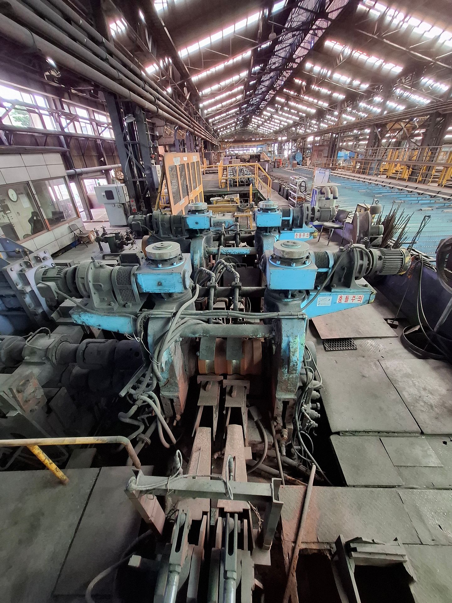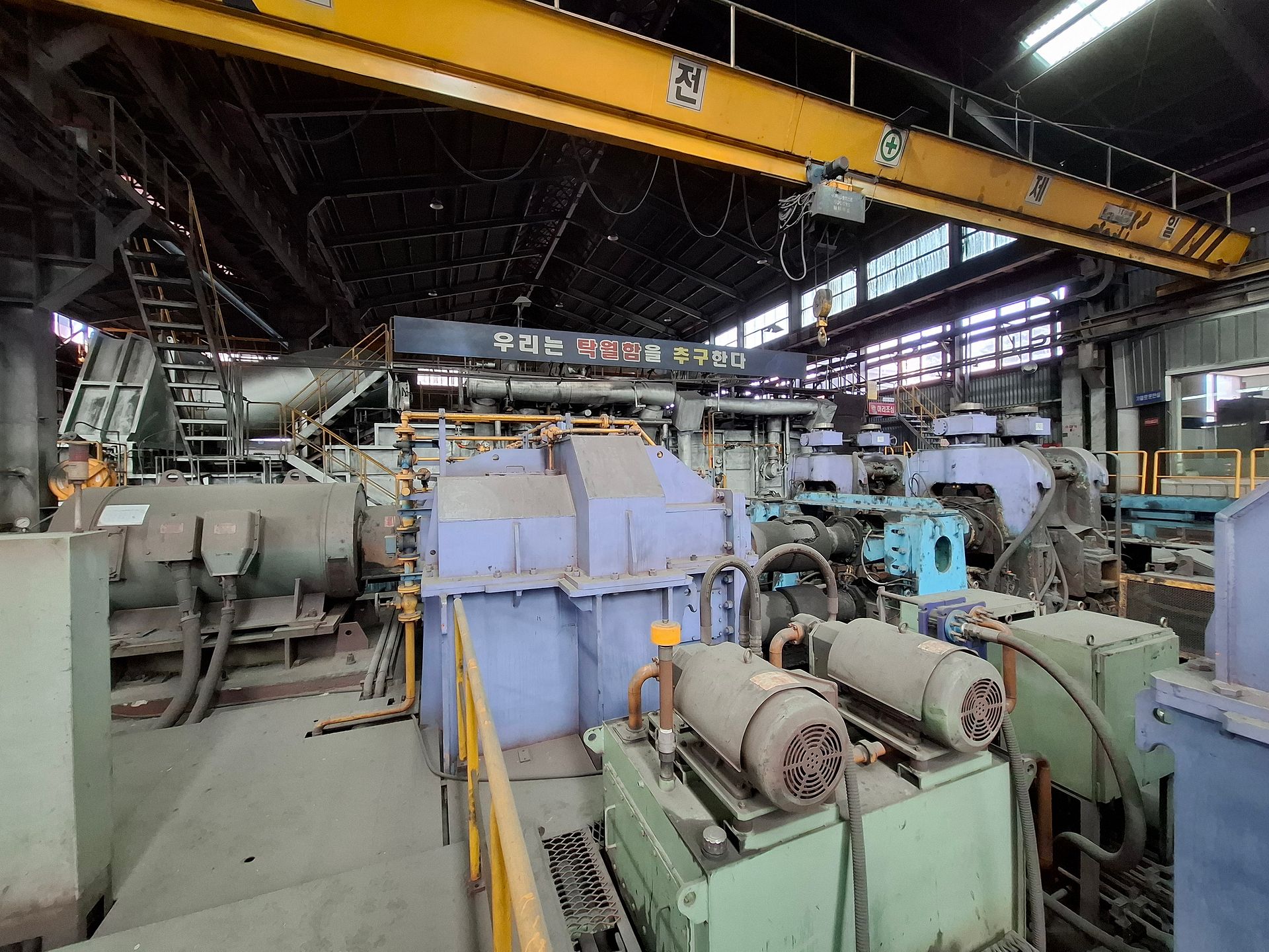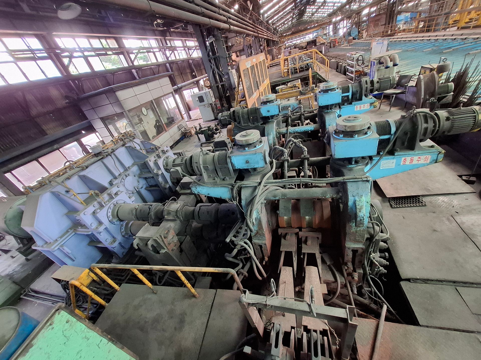 KOSteel rolling mill is capable of producing rebar and wire-rod in a compact layout, including consumables and spare parts for 2 years of operation and a fully equipped rolls and guides shop. The 2-strand wire-rod line features heavy-duty finishing blocks supplied by KOBELCO Japan in 2015 for precision wire rolling and dimensional stability.