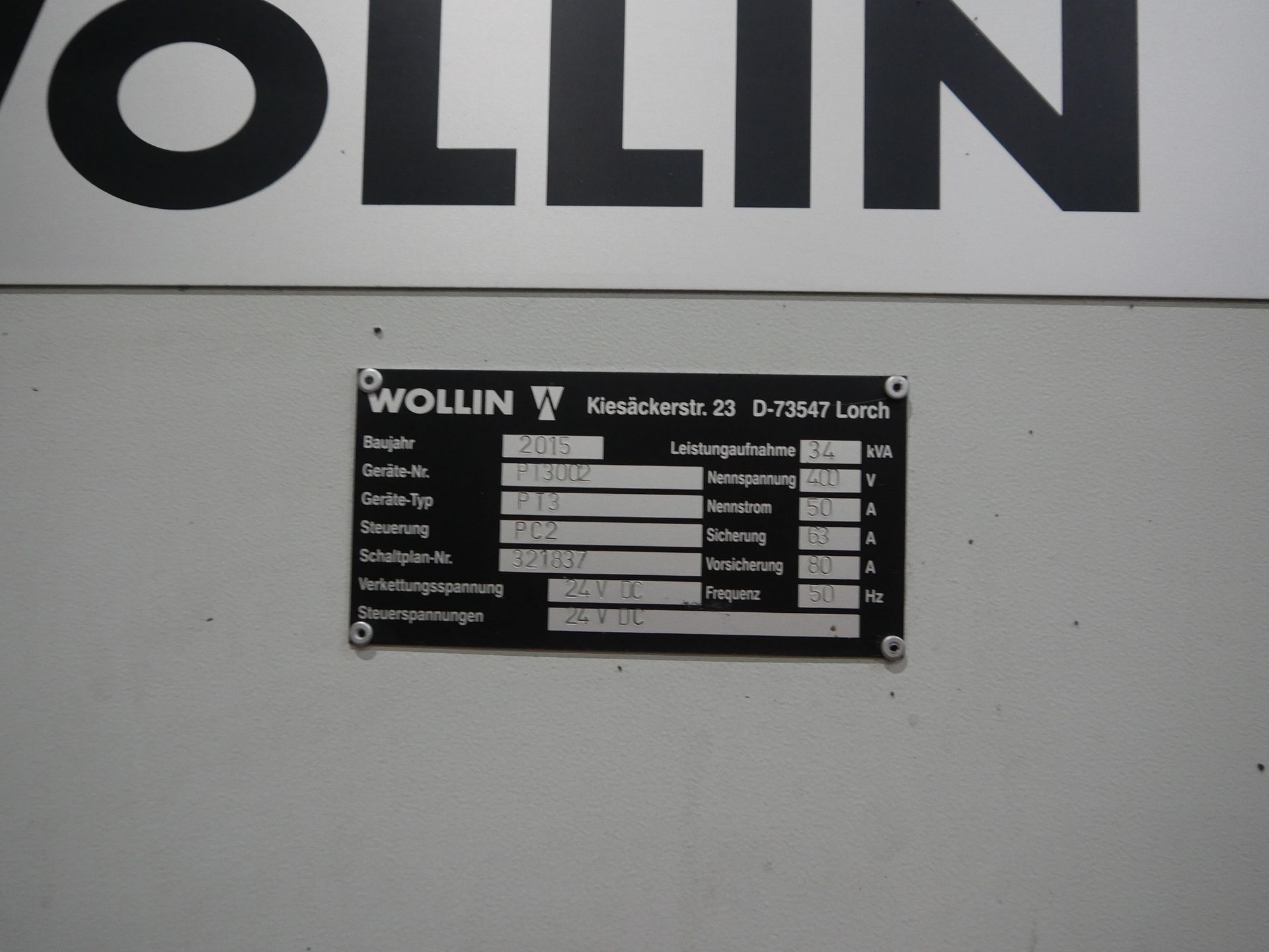 Description: Power consumption 34 kVA, Control, Mfg. Wollin, Type PC2
