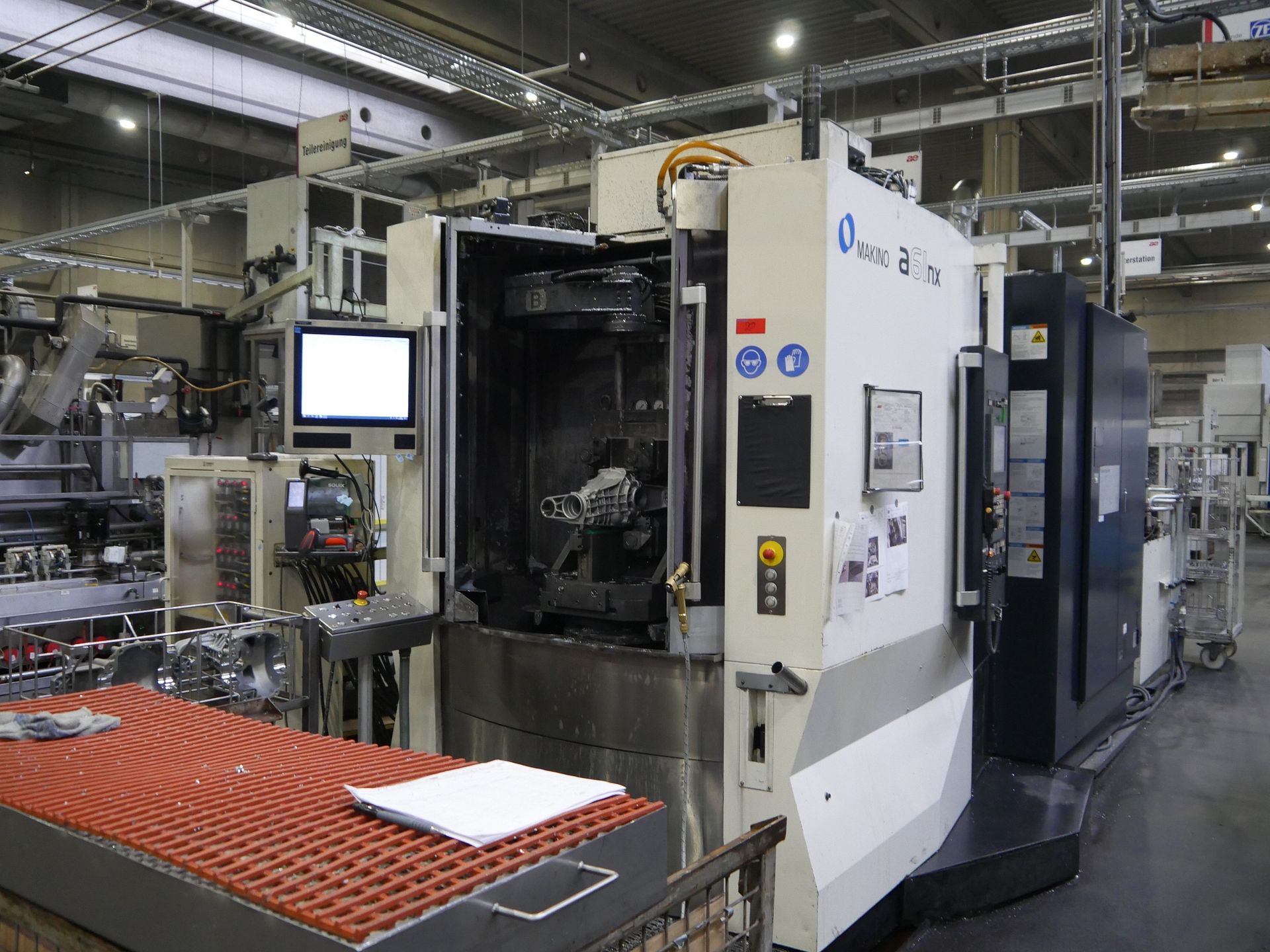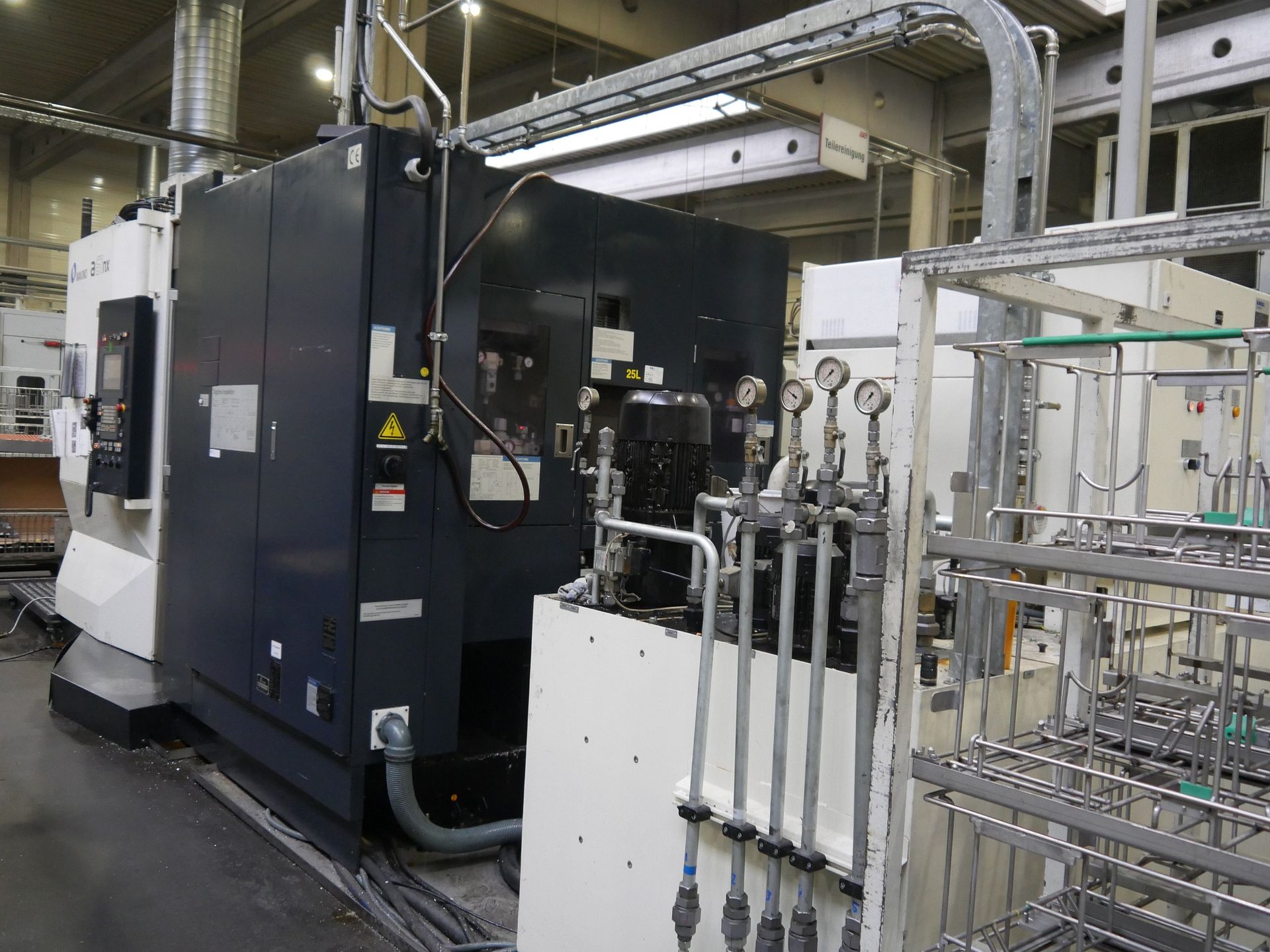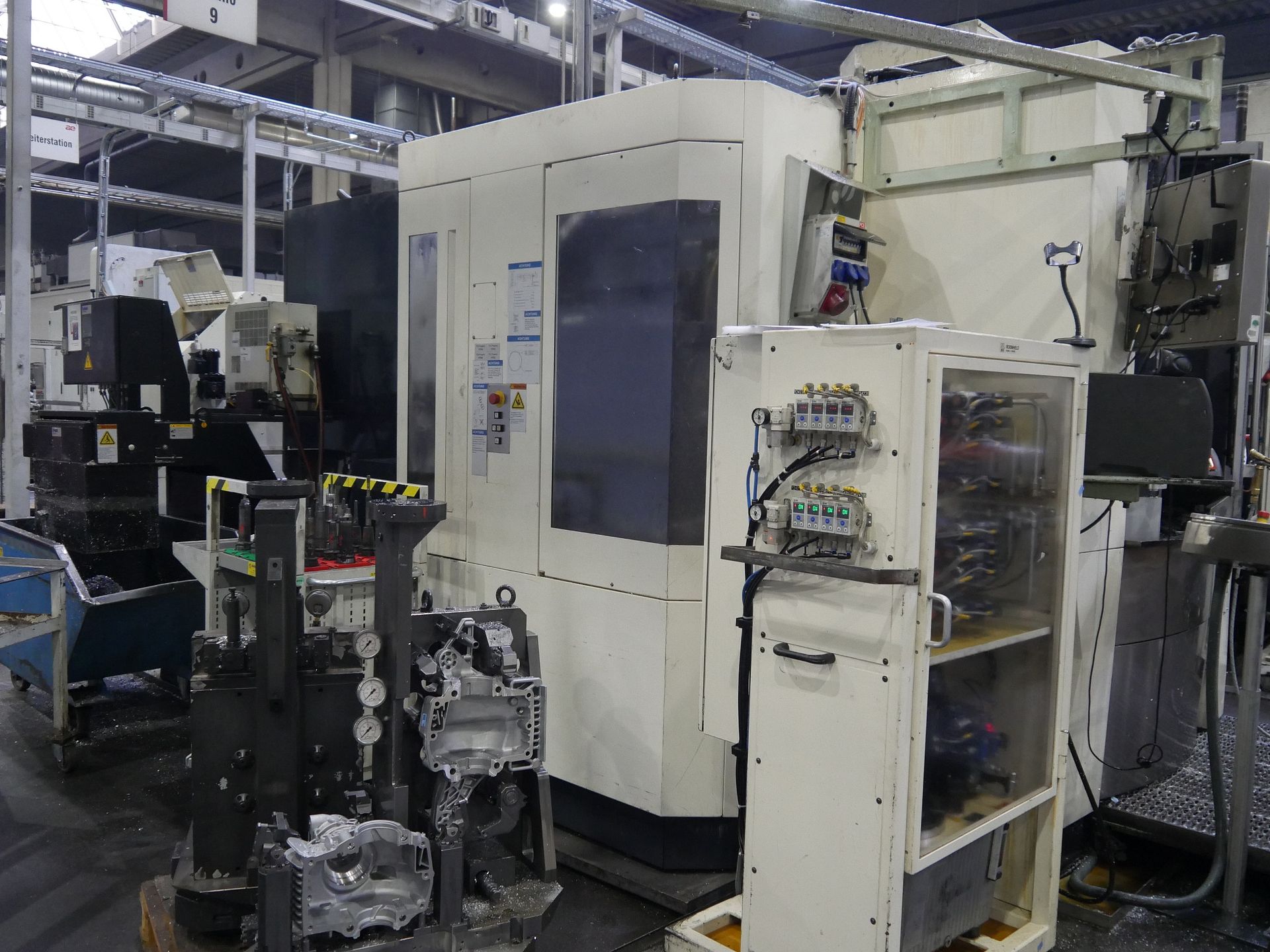 Travel X/Y/Z 730/650/730 mm, spindle speed 50 – 14,000 1/min, tool holder HSK-A63, IKZ, tool changer 60 Pos., workpiece pallet changer 2 Pos., pallet size 500 x 500 mm, hydr. Workpiece clamping device, oil mist extraction/filter system, chip conveyor, control, Mfg. Makino, type Professional 5, abl. Operating hours 82.320, Cooling lubricant high-pressure/filter system, Mfg. Knoll, type KF 400/2250, built in 2014, SN 201334334