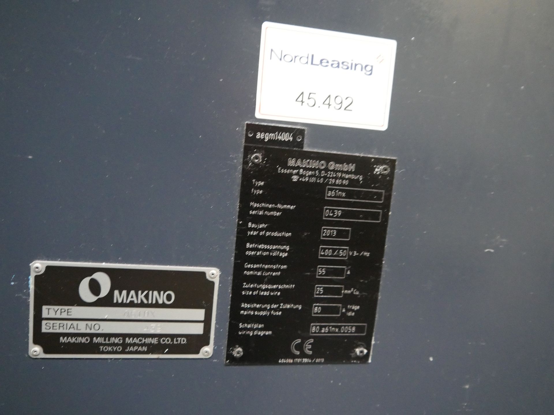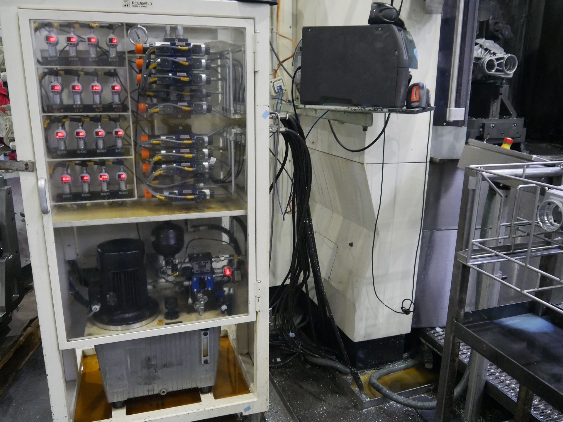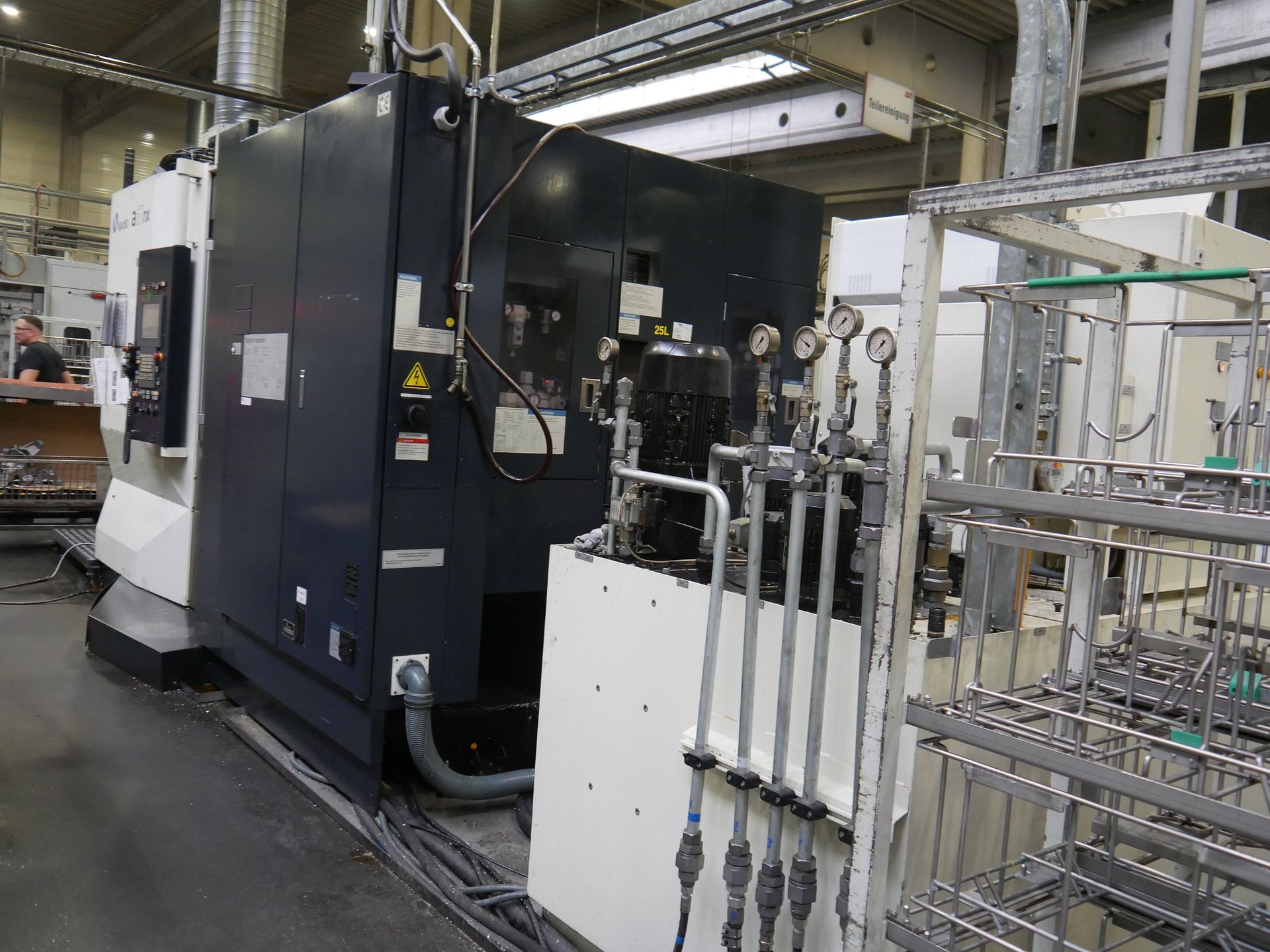Travel X/Y/Z 730/650/730 mm, spindle speed 50 – 14,000 1/min, tool holder HSK-A63, IKZ, tool changer 60 Pos., workpiece pallet changer 2 Pos., pallet size 500 x 500 mm, hydr. Workpiece clamping device, oil mist extraction/filter system, chip conveyor, control, Mfg. Makino, type Professional 5, abl. Operating hours 82.320, Cooling lubricant high-pressure/filter system, Mfg. Knoll, type KF 400/2250, built in 2014, SN 201334334
