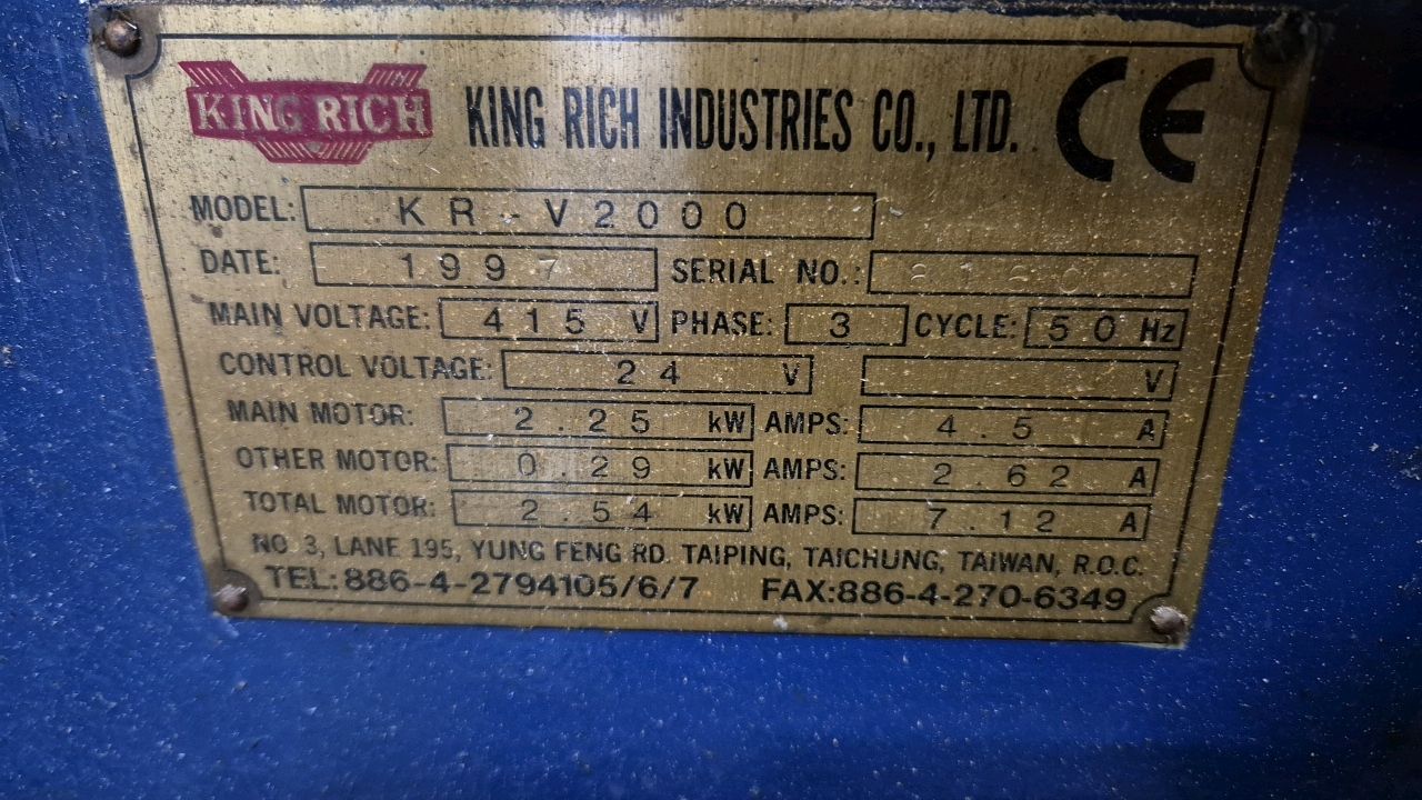 Lot No. 63Milling Machine King Rich KR-V2000