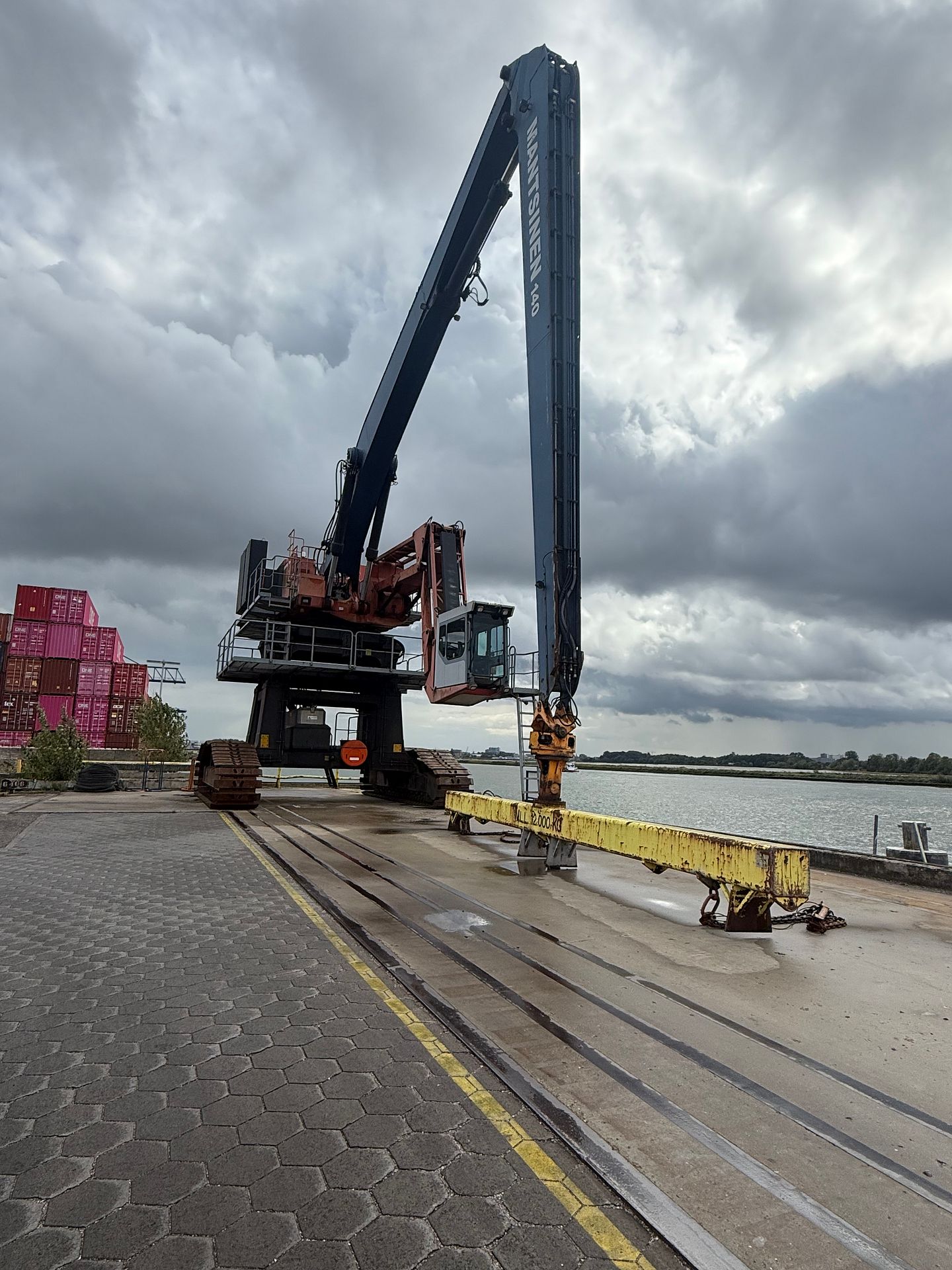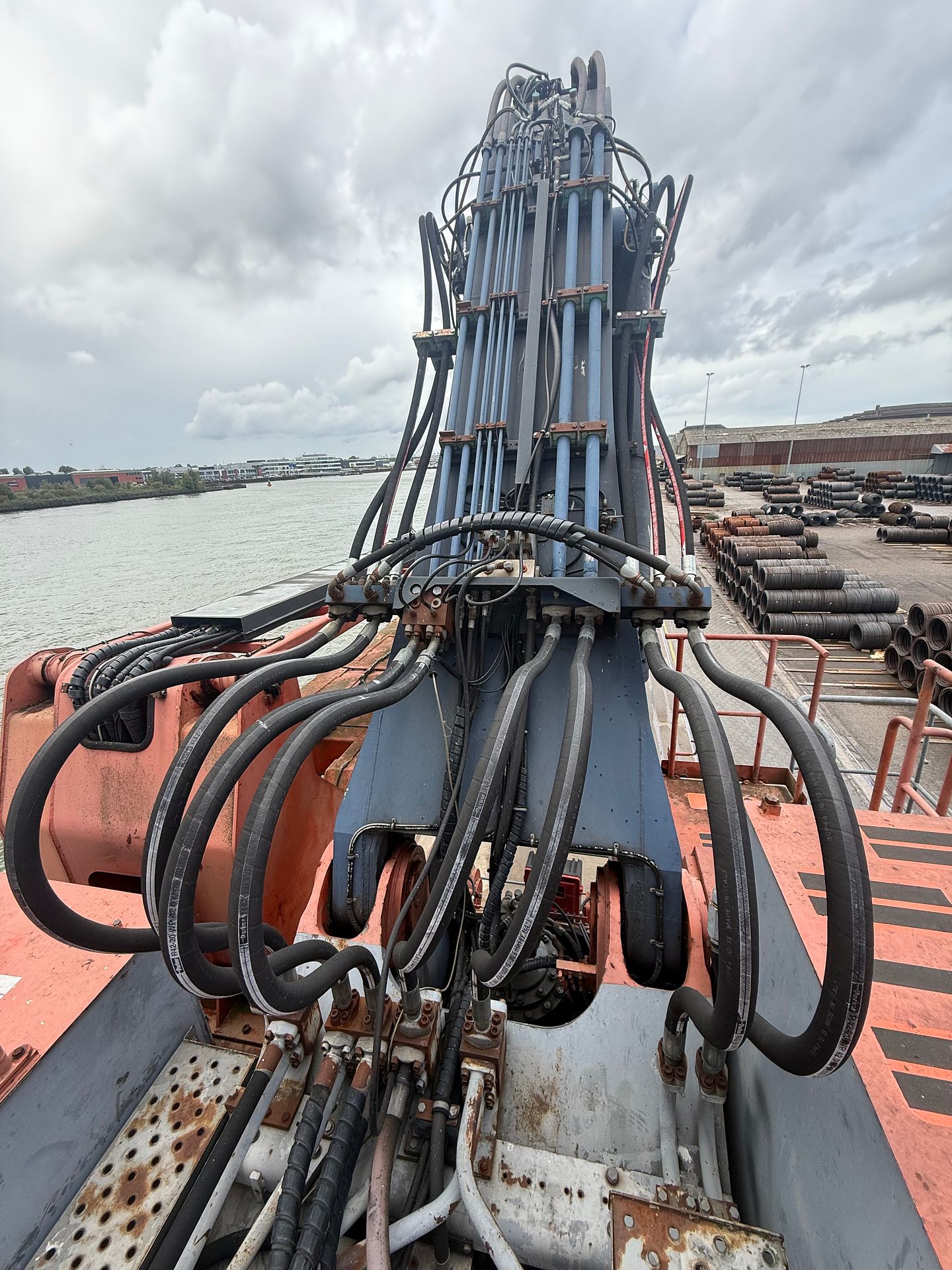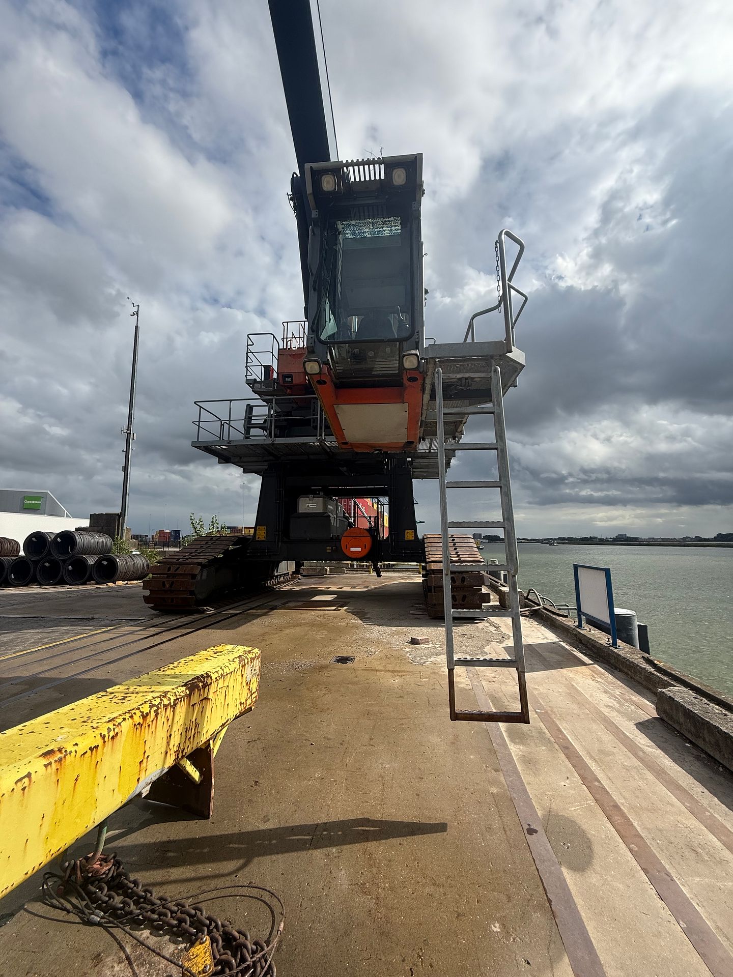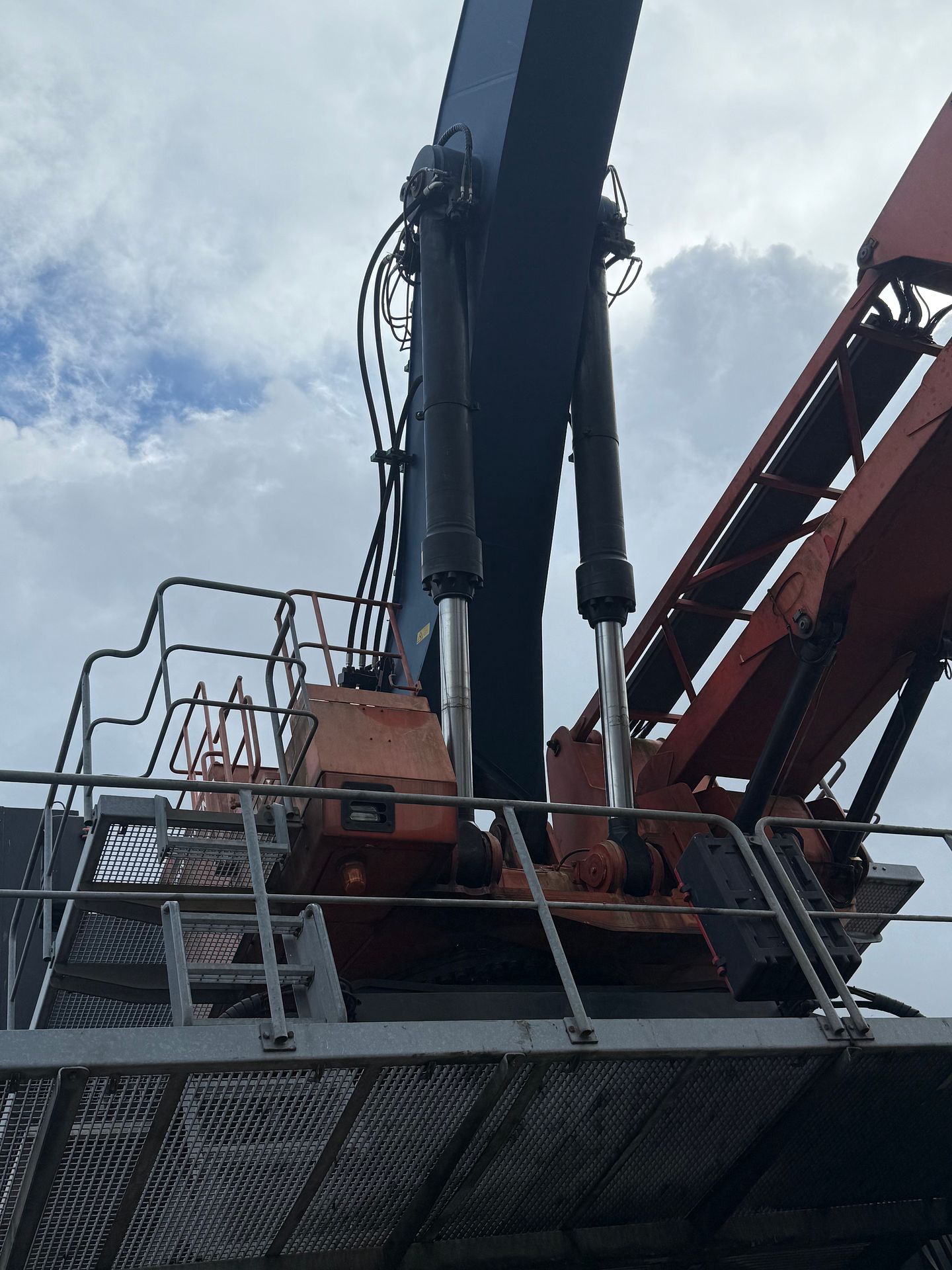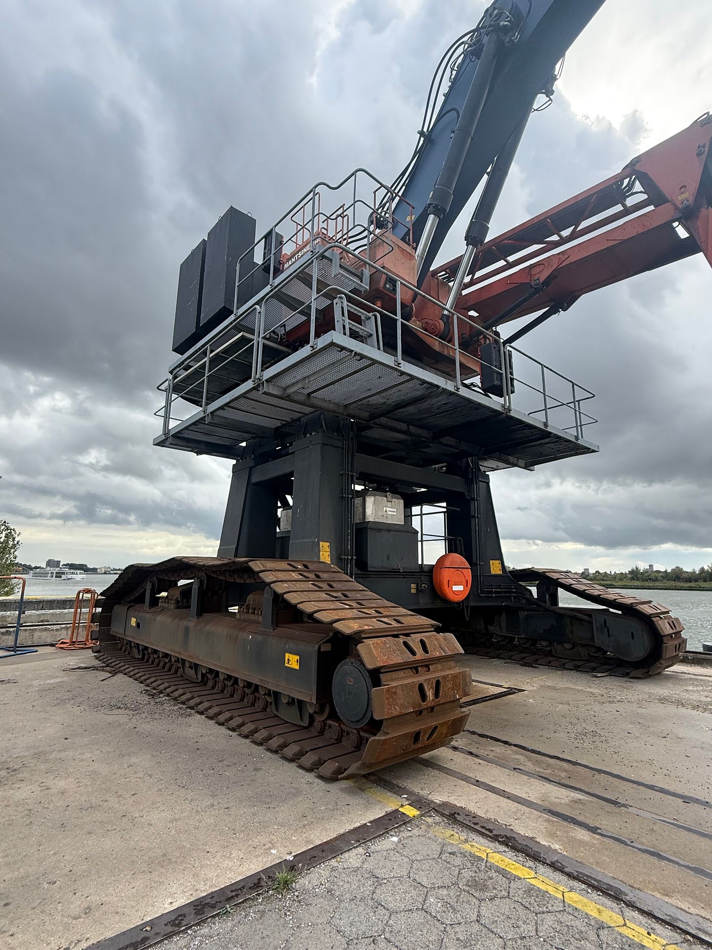 A Hitachi EX1200 Hydraulic Excavator is the basis of the Mantsinen 140 RHC to act as a Ship Unloader for billets. Maintenance records are available including recent major service description. The list of equipment includes several auxiliary parts, such as a lifting yoke, a lifting head and a beam.