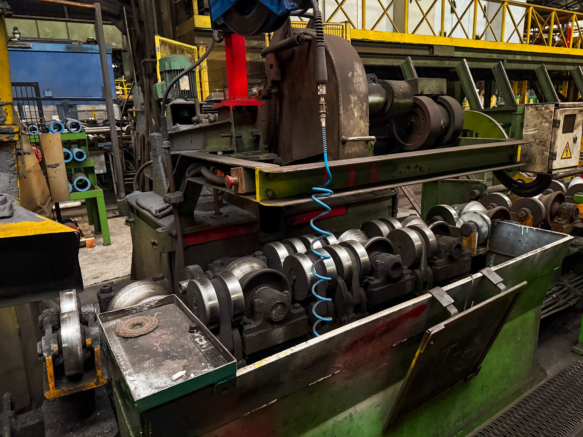 MEDART 09LSF Peeling Machine 4-roll tube alignment and centering before peeling.