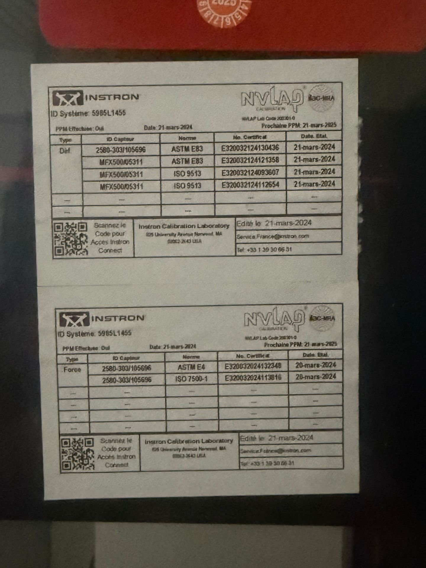 INSTRON 5995 tensile testing machine n°5985L1455 (2011)