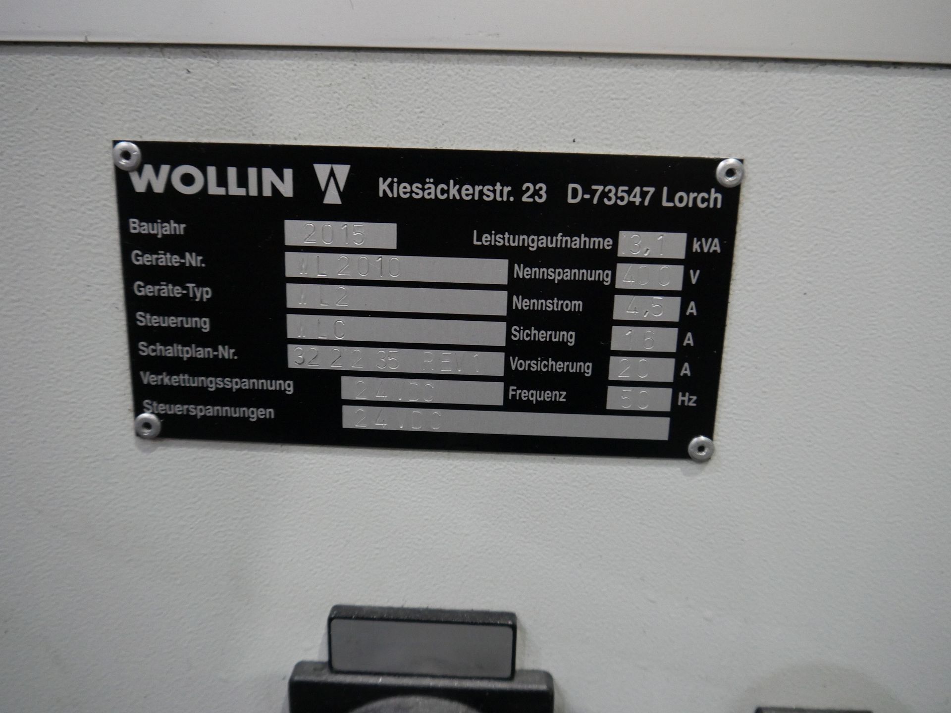 Description: Power Consumption 3.1 kVA, Control, Mfg. Wollin, Type WLC