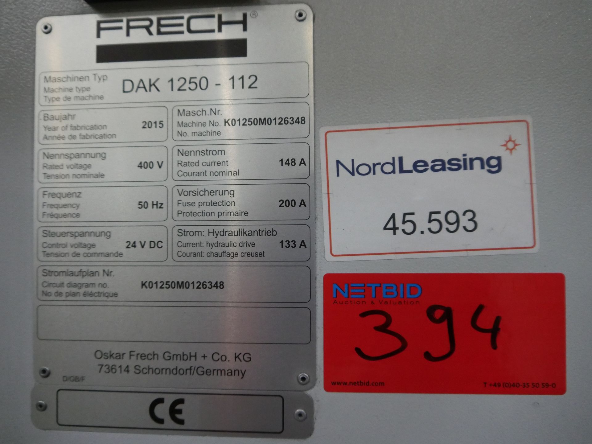 2015 Frech DAK 1250-112 Cold Chamber Die Casting Line – Complete System