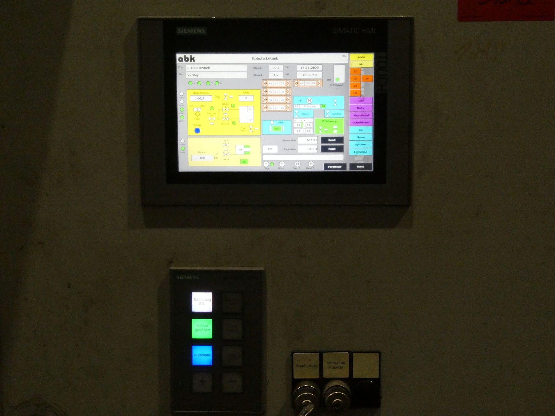 Description: Control, Fabr. Siemens, protective fencing, safety device, 2 discharge conveyor belts