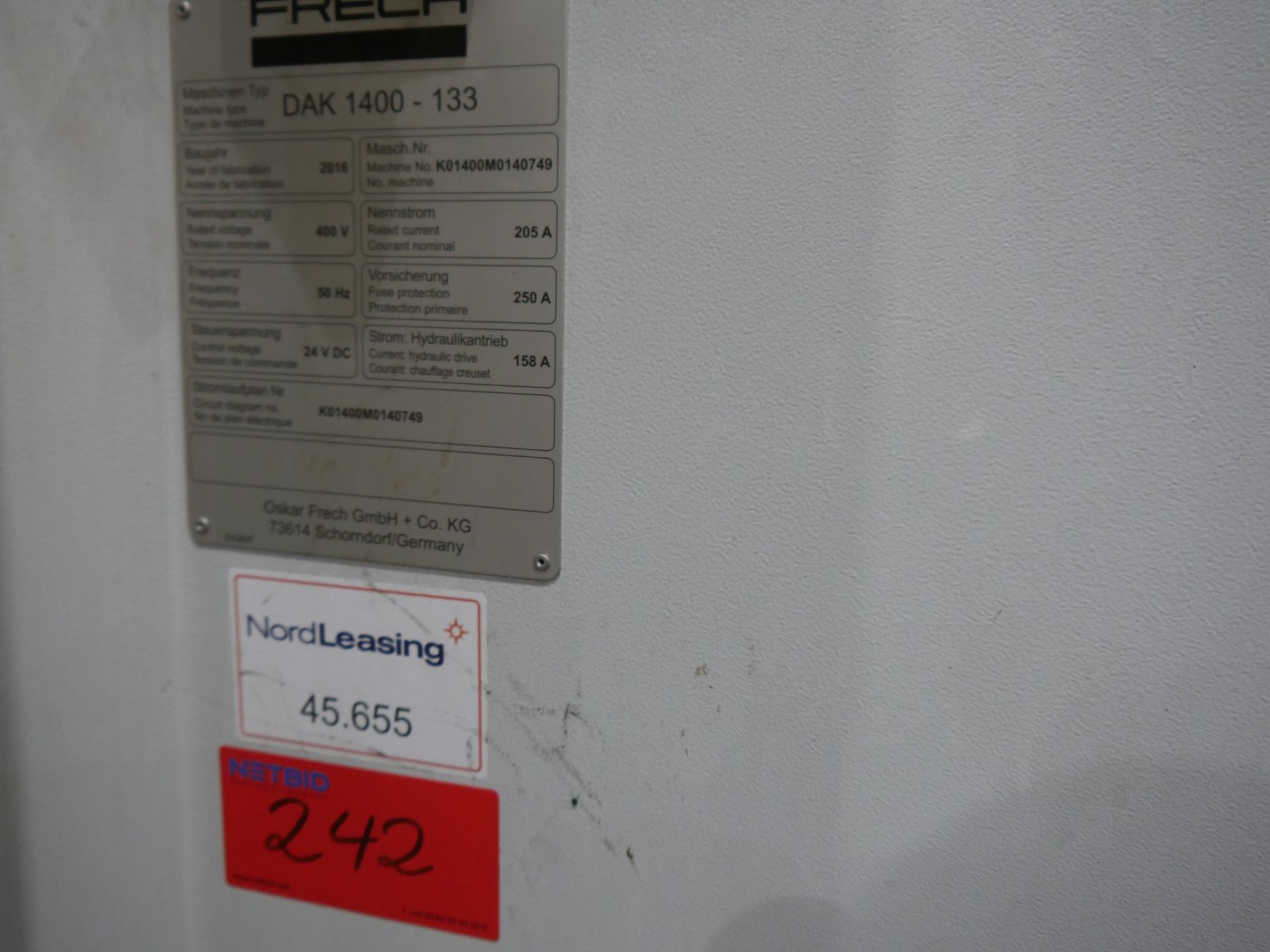 Description: Machine weight 50,000 kg, nominal clamping force 15,400 kN, hydr. Operating pressure 160 bar, control, Mfg. Frech, Typ Datadialog