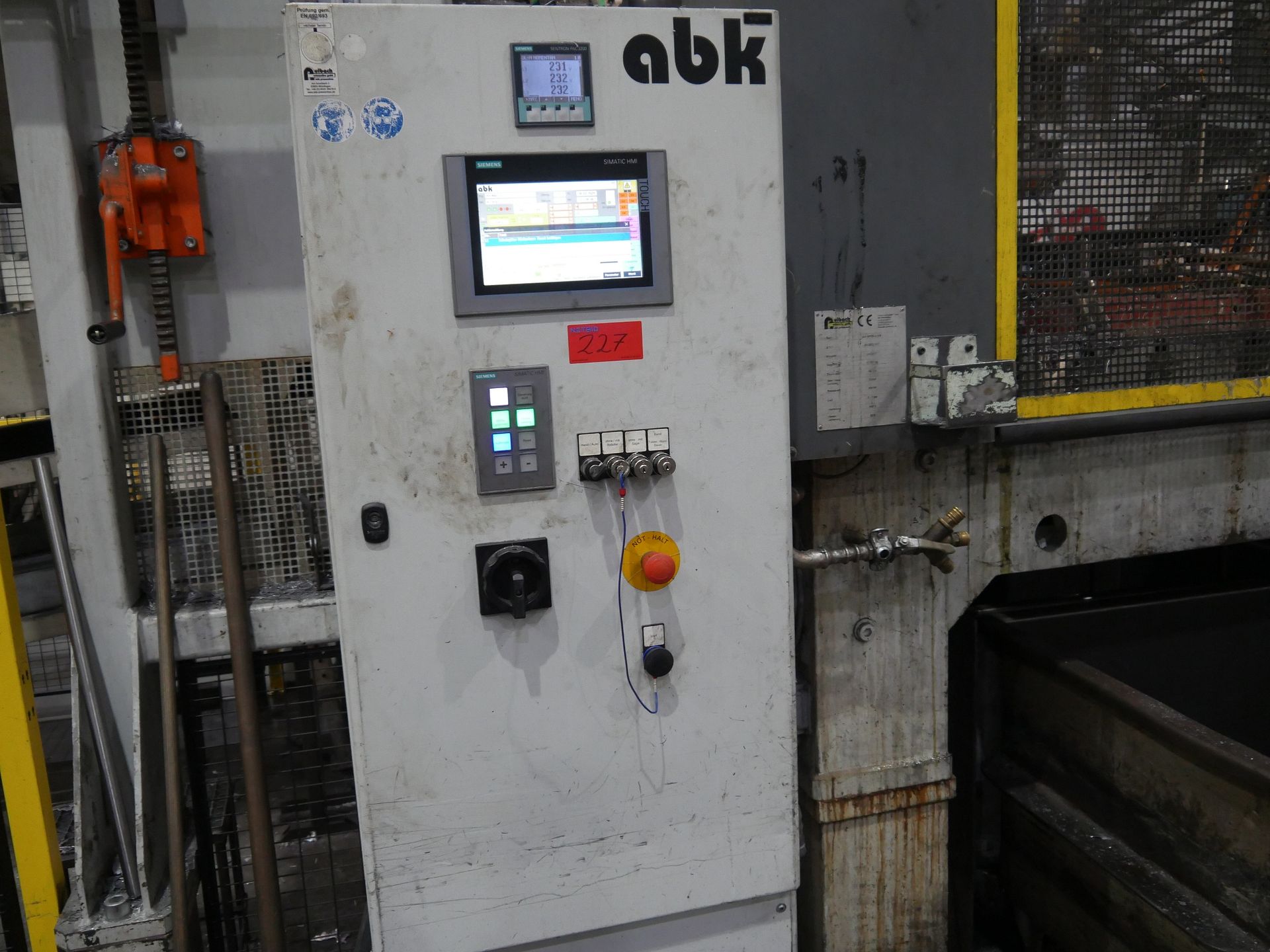 Description: Machine weight 17,000 kg, pressure max. 190 bar, connected load 15 kW, nominal pressing force 984 kN, control, Mfg. Siemens, Type S7, Protective Enclosure