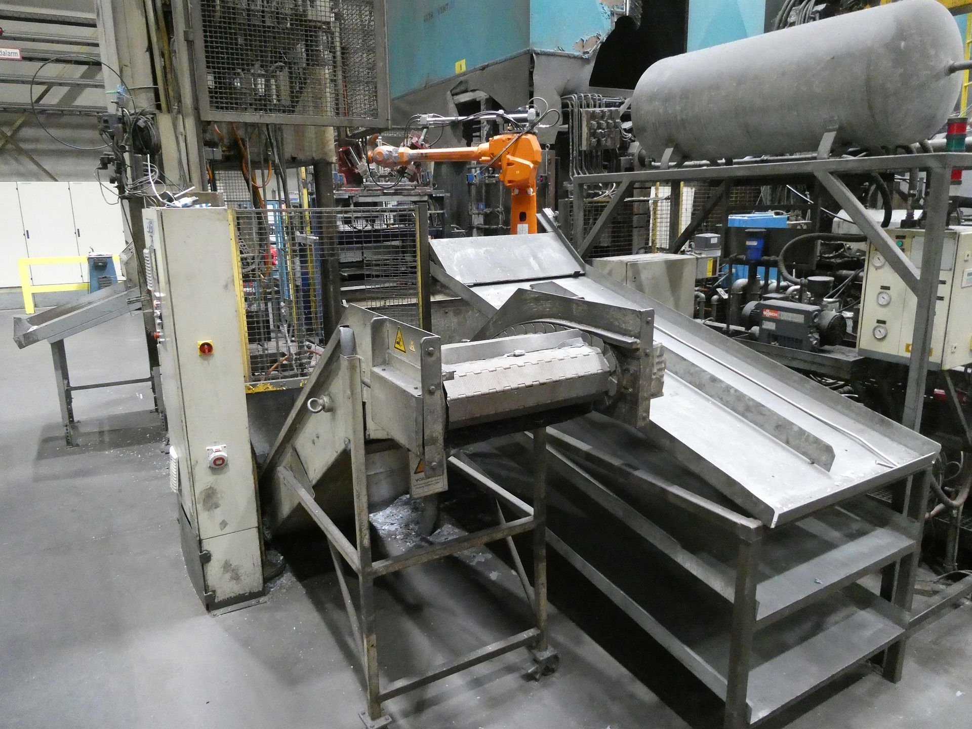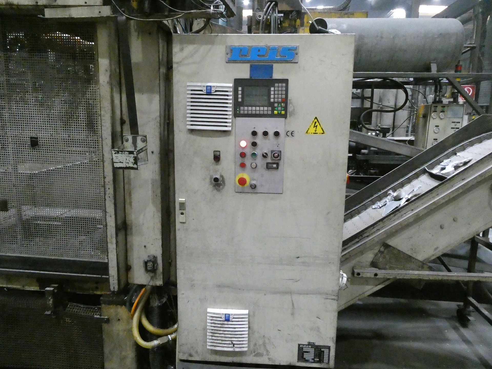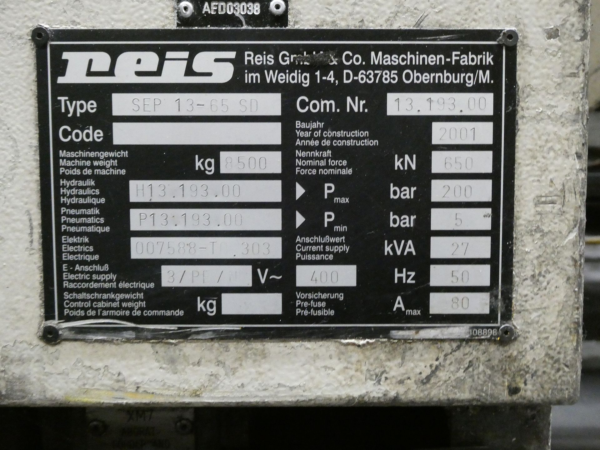 Description: Net weight 8,500 kg, nominal force 650 kN, pressure max. 200 bar, min. 5 bar, connected load 27 kVA, control dialog, conveyor belt, protective housing, safety devices