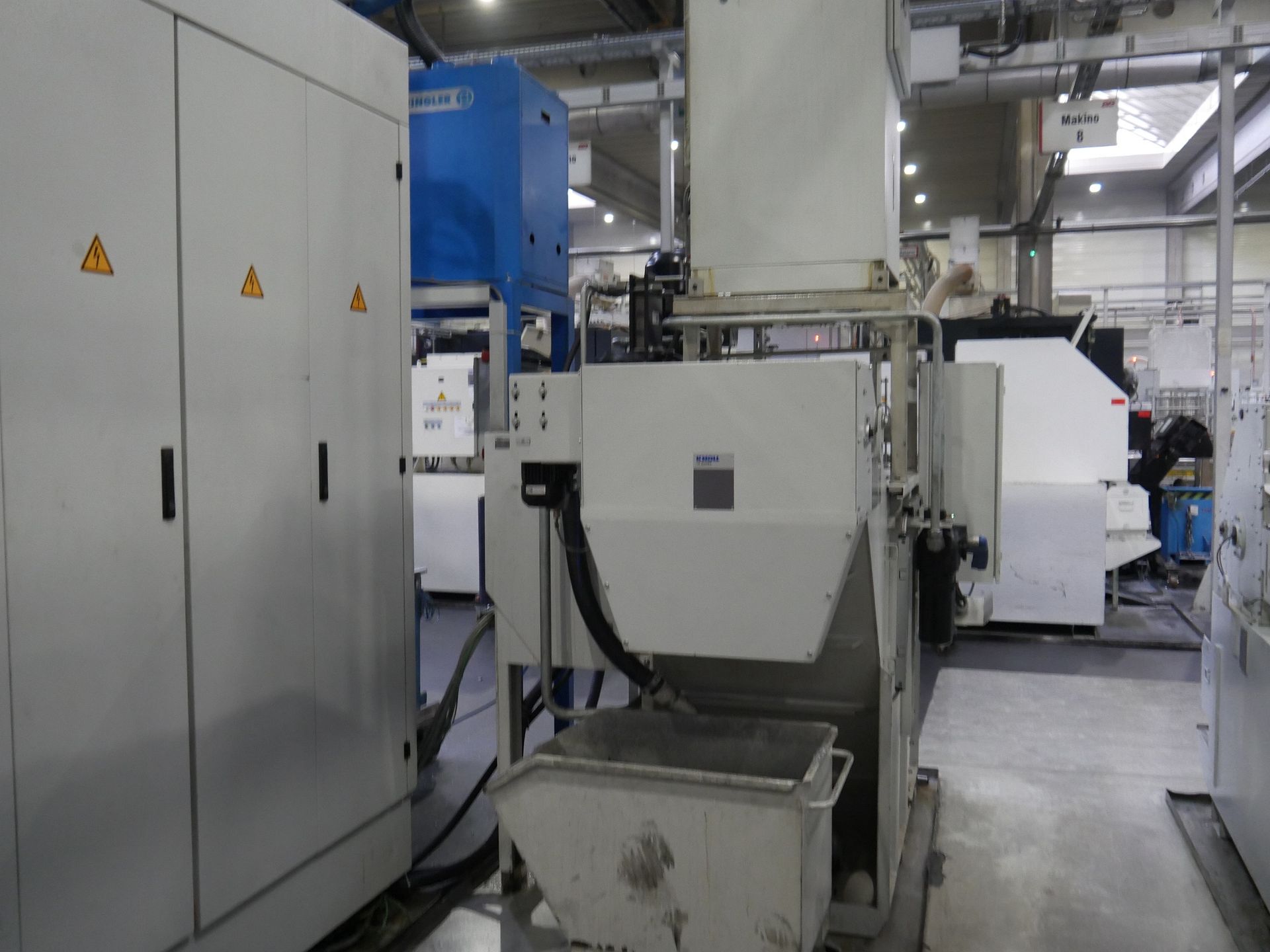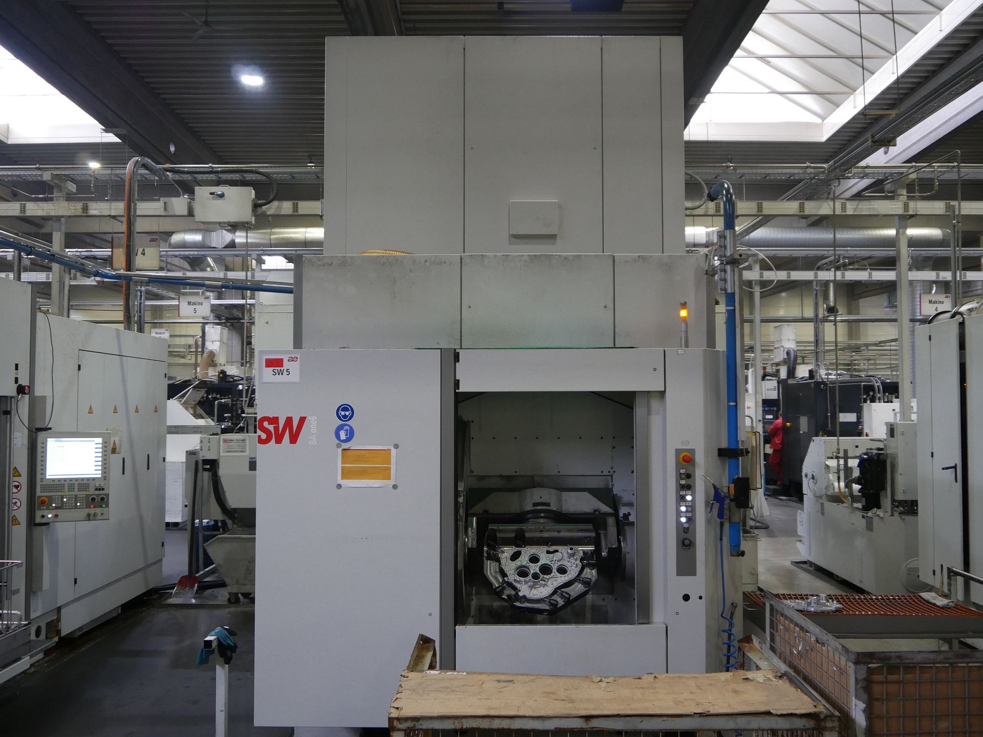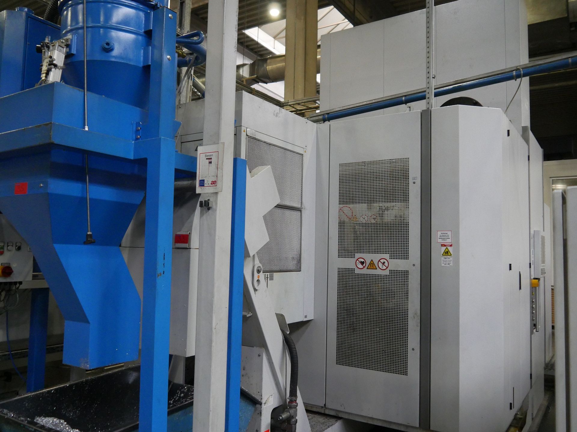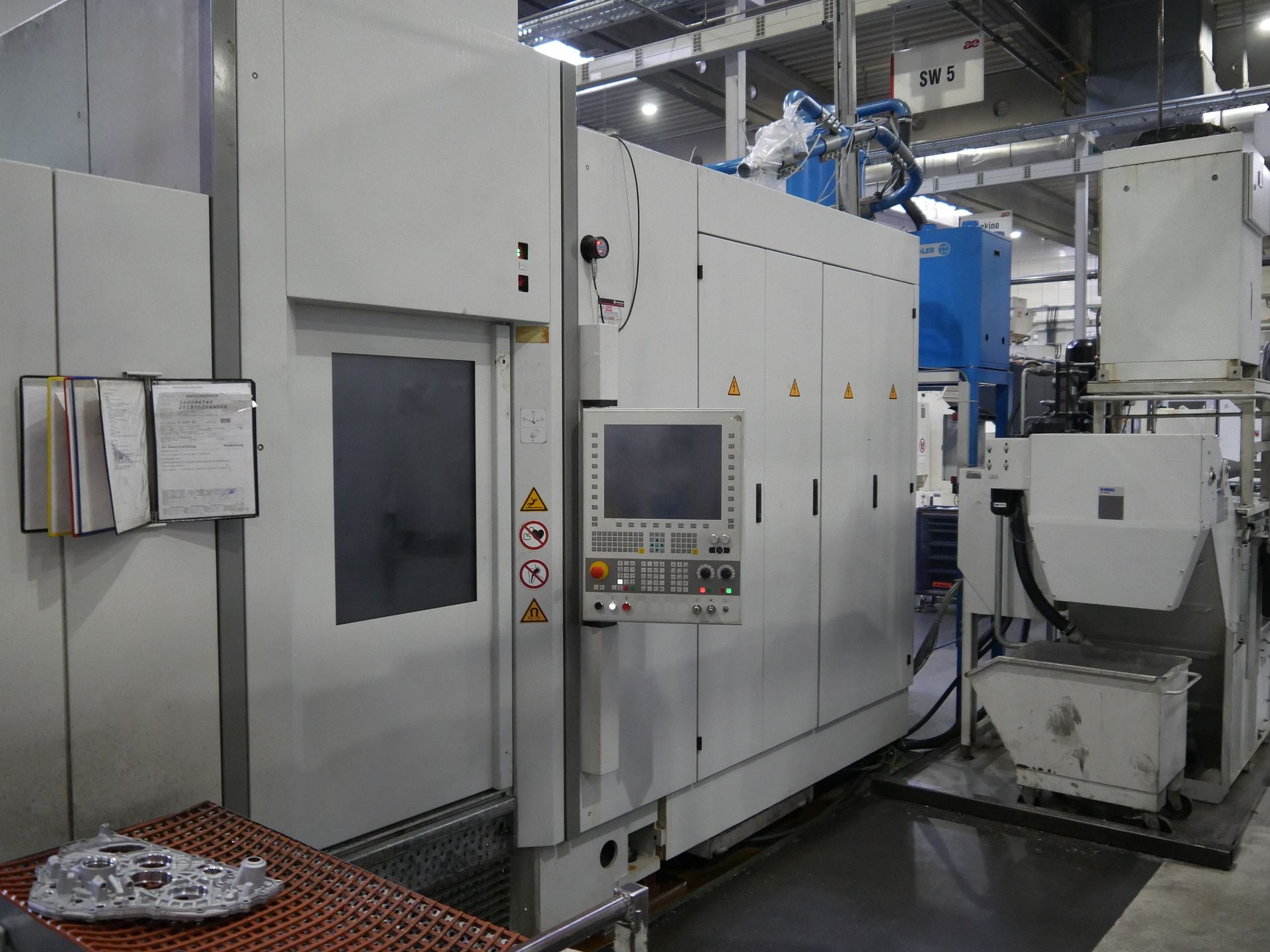 Machine weight 125 kN, travel X/Y/Z 600/650/500 mm, spindle speed 0 – 17,500 1/min, spindle power 35 kW, tool holder HSK-A63, tool breakage monitoring, tool measuring system, Mfg. Marposs (tactile), radio-controlled, workpiece changer 2 Pos., version as swivel rotary table (A/B axis), 155 Pos. tool changer, chip conveyor, type 550 K-1, control, Mfg. Siemens, type Sinumerik 840D sl, Operating hours 45.153, Cooling lubricant high-pressure/filter system, Mfg. Knoll, type FKA/450+VRF 250, built in 2016, SN 1272706+1268641