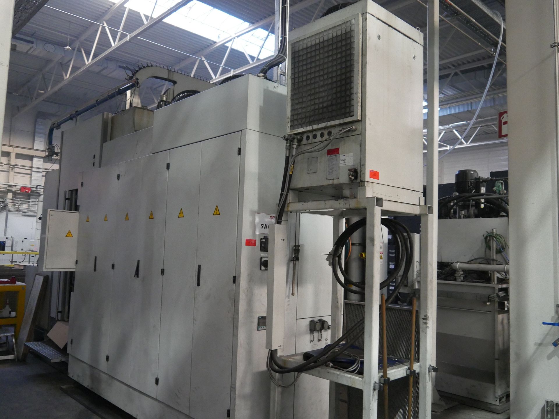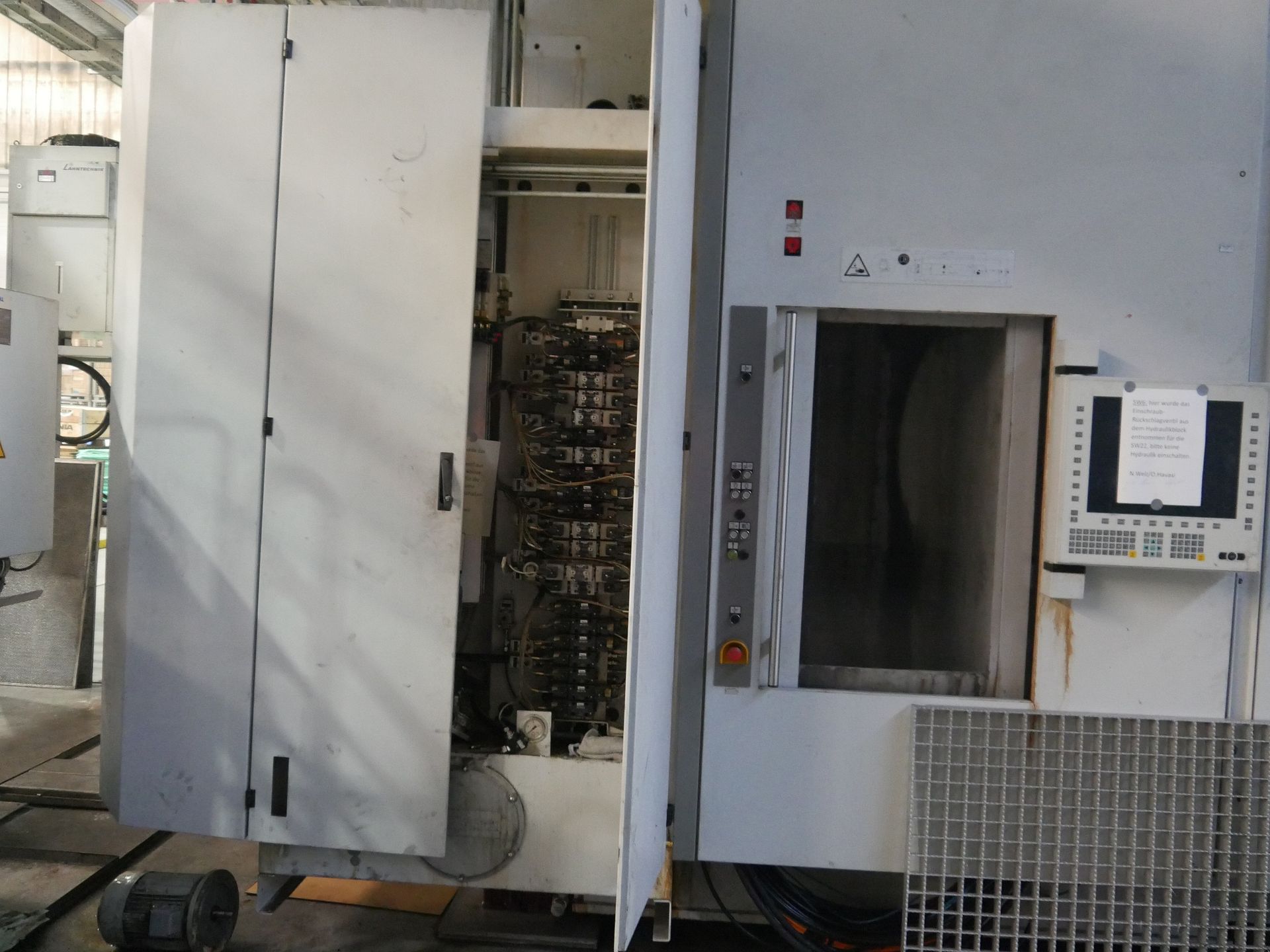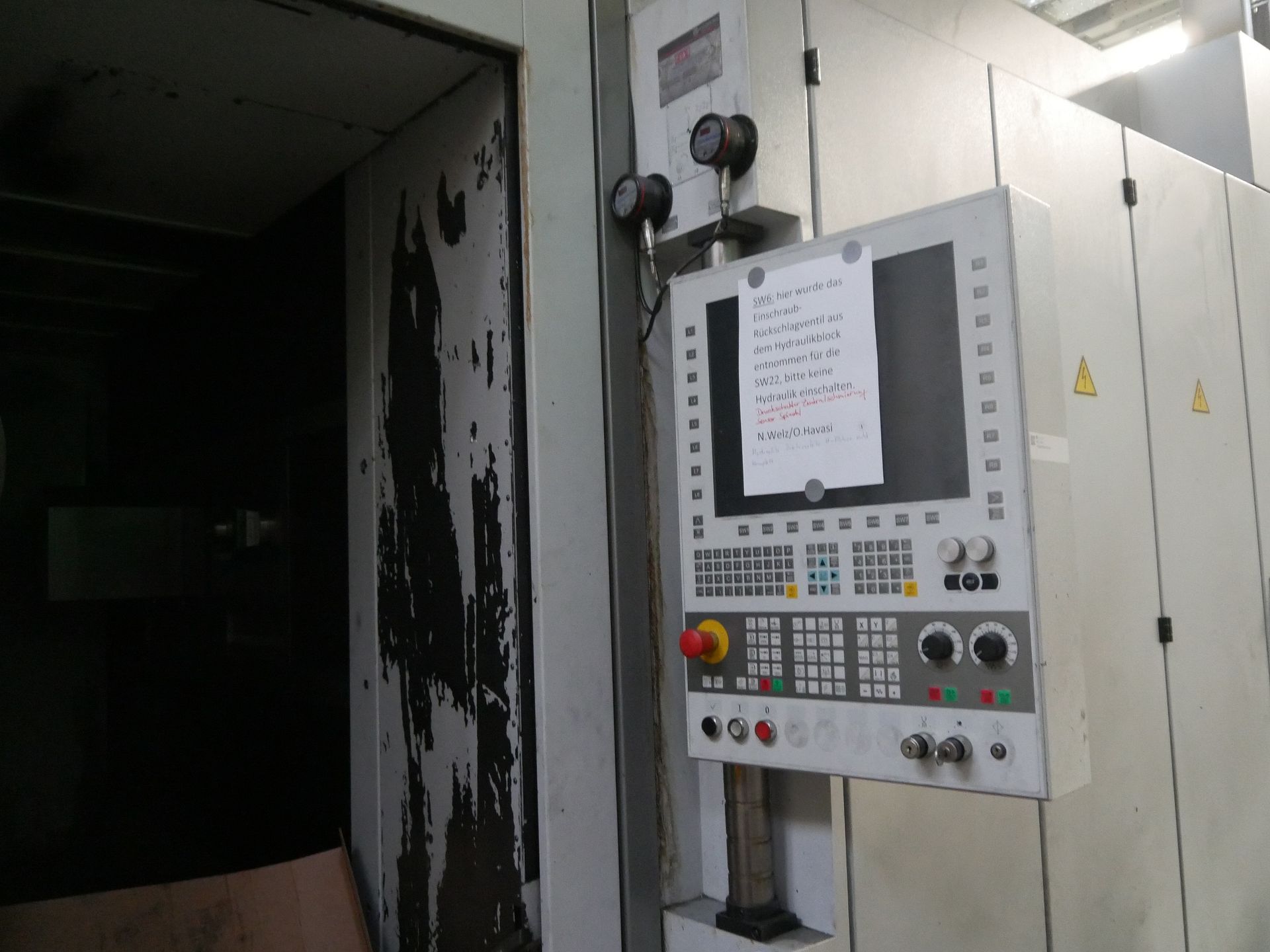Machine weight 240 kN, travel X/Y/Z 800/900/660 mm, spindle speed 1 – 17,500 1/min, tool holder HSK-A63, IKZ, tool breakage monitoring, touch probe, Mfg. Marposs (tactile), radio-controlled, workpiece changer, version as swivel rotary table (A/B axis), 60 Pos. tool changer, chip conveyor, type 550 K-1, control, Mfg. Siemens, type 840D sl, Operating hours 45.948, Cooling lubricant high-pressure/filter system, Mfg. Knoll, type VRF 450/2450, built in 2016, SN 2012559