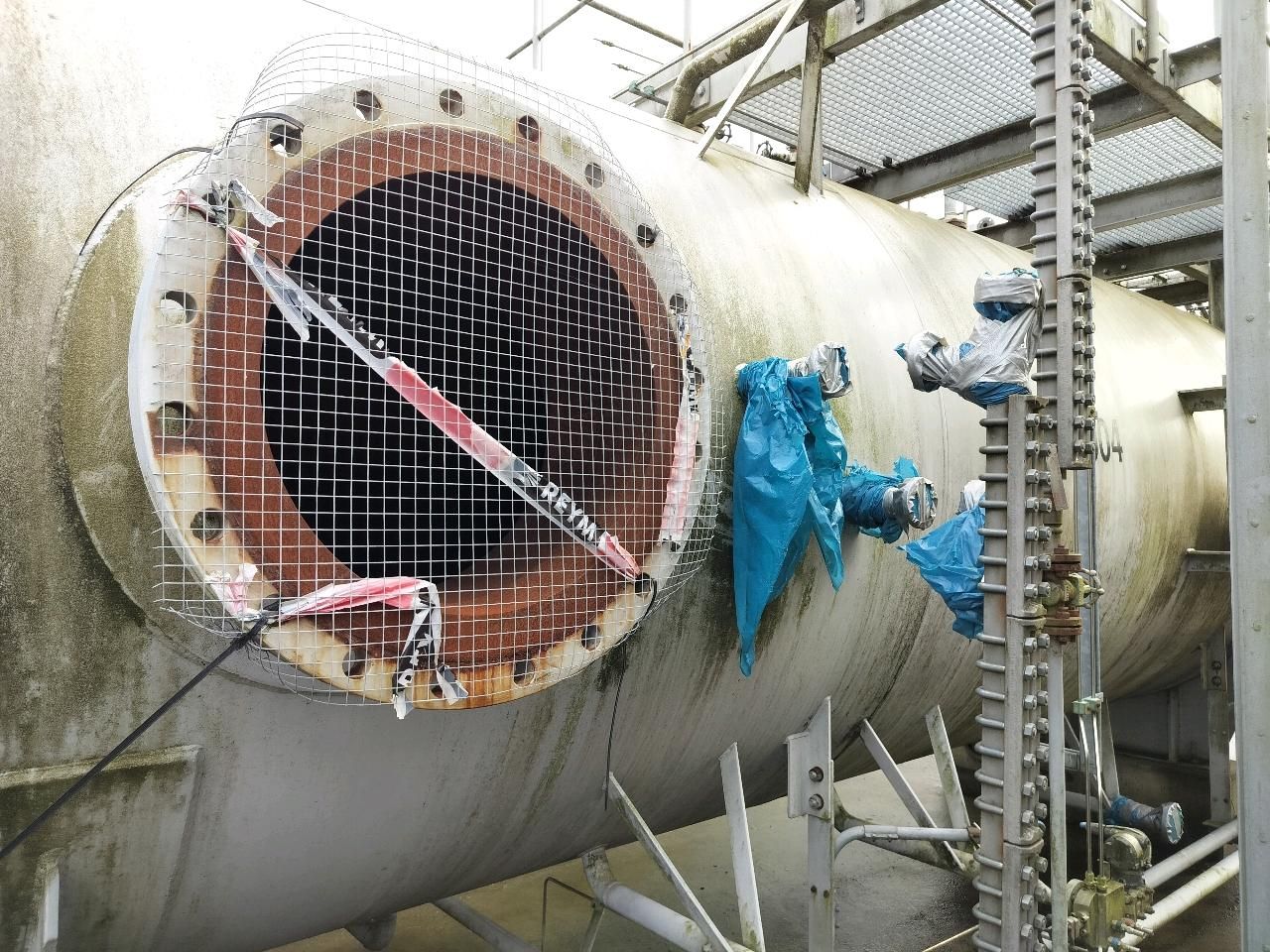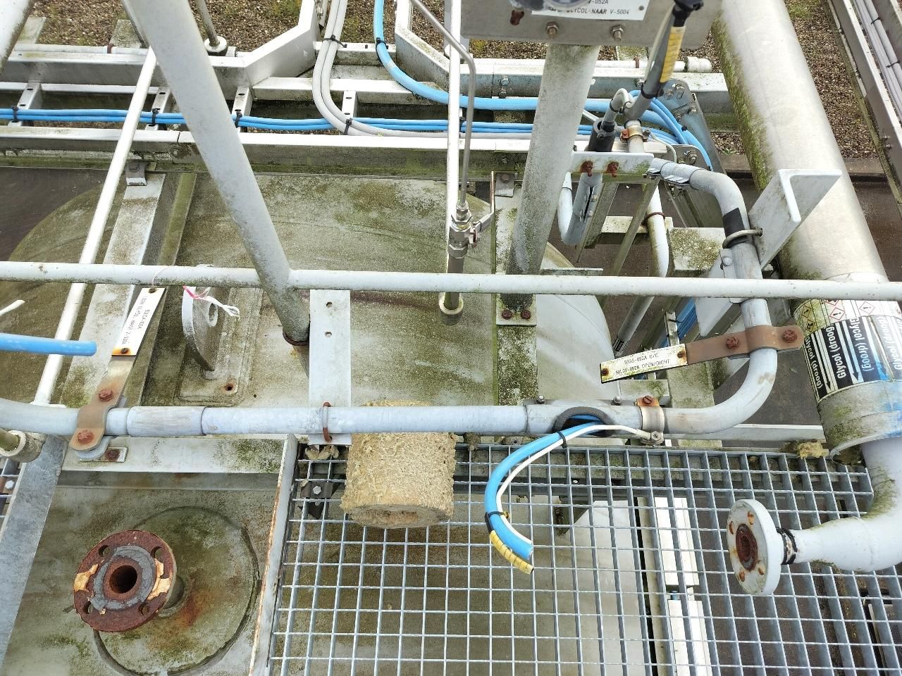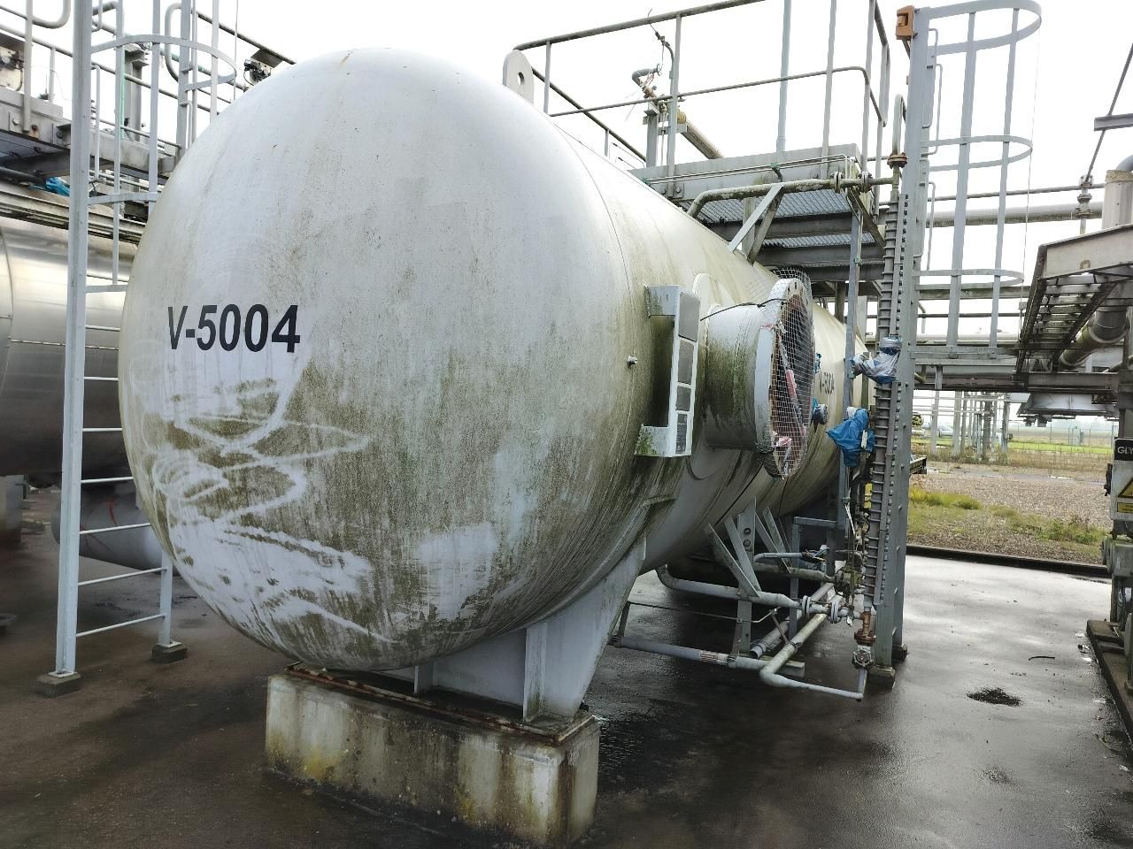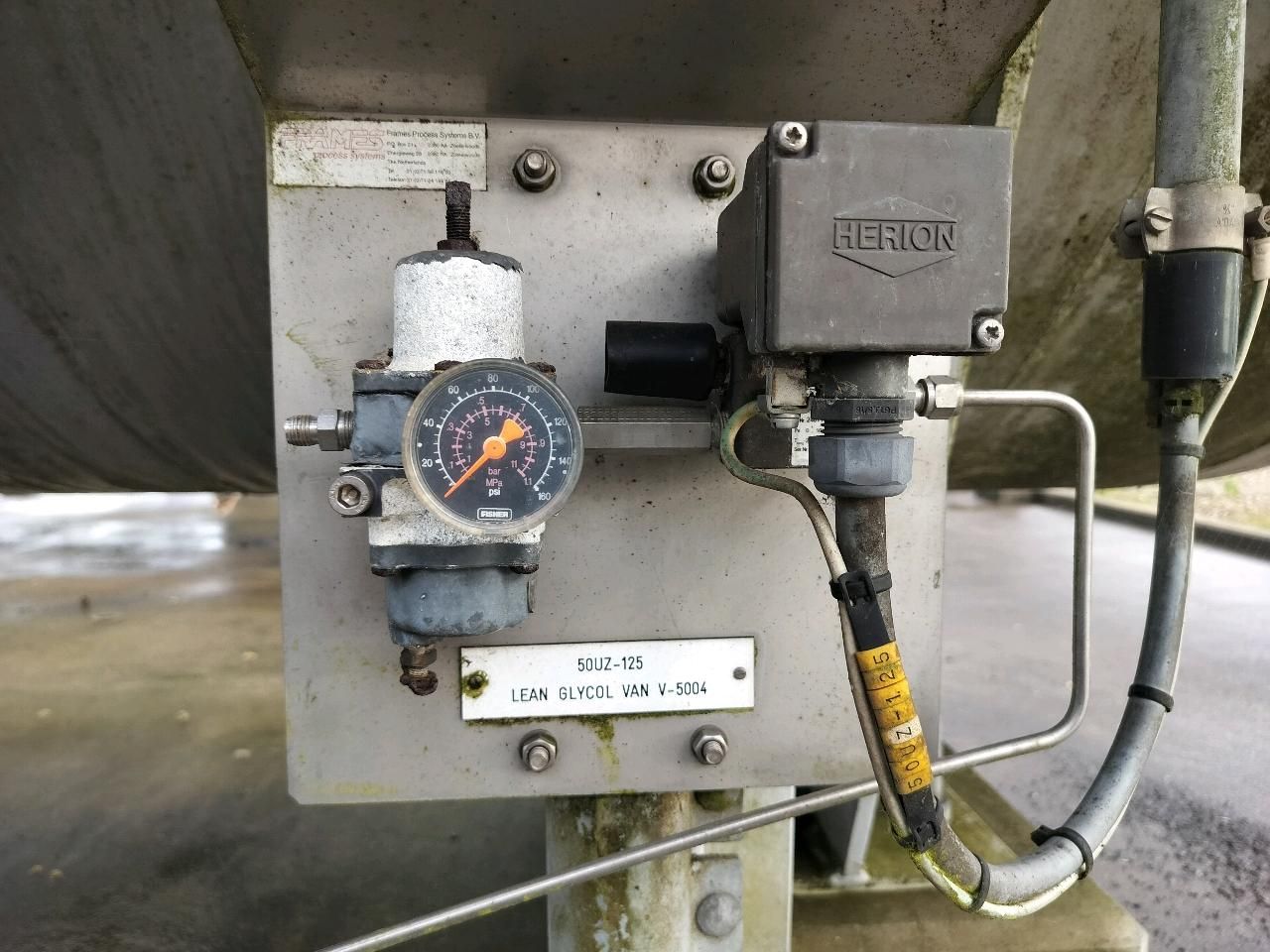 Frames Process Systems is known for modular engineered equipment used in oil & gas, petrochemical, and energy industries. This vessel is installed outdoors at an industrial plant, integrated into a larger glycol regeneration or circulation system.