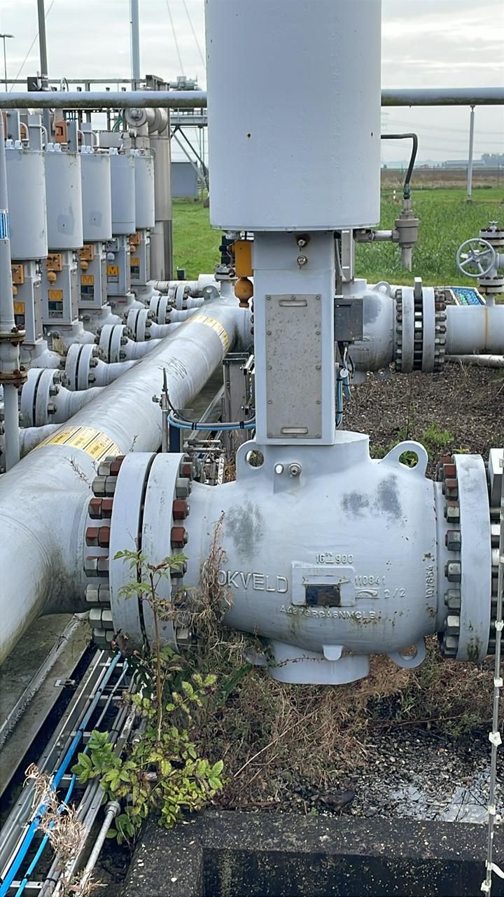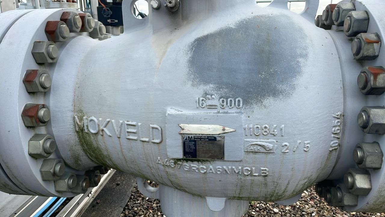 The valve body is a 16-inch, ANSI Class 900 pressure-rated design, suitable for transmission pipelines, compressor stations, process gas control, gas treatment plants, and high-pressure liquid service. The actuator assembly ensures reliable remote operation, making it ideal for SCADA-integrated systems or automated shutdown/ESD functions.