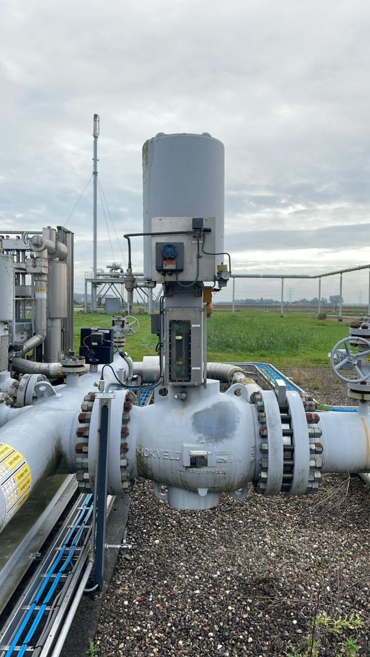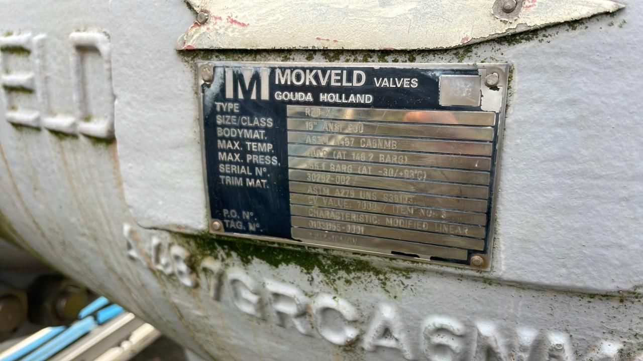 This particular unit is equipped with a large pneumatic actuator, complete with positioners, solenoid valves, limit switches, and instrument tubing making it a turnkey solution for automated process control. Designed for severe service, Mokveld axial valves offer ultra-low pressure drop, smooth flow regulation, and long service life, even under fluctuating load and high cycling conditions.