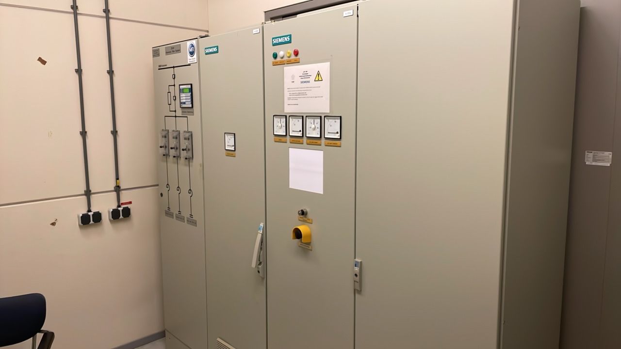 Alongside the cooling controls, the installation includes Siemens operator and distribution cabinets, fitted with analog meters, selector switches, protection modules, and control interlocks. These provide reliable local operation for critical electrical components, enabling safe energization, fault detection, and system reset procedures.
